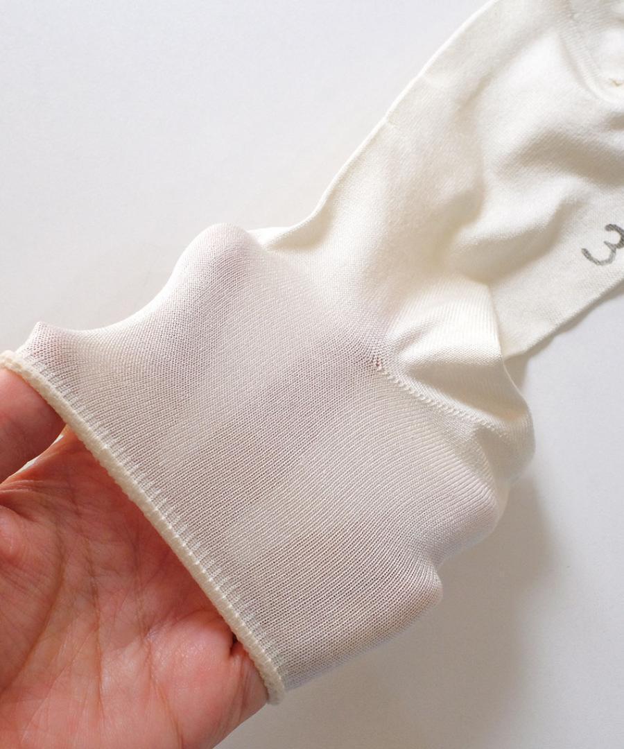 肌に接する部分(内側)はシルク100%の糸を使用しています。