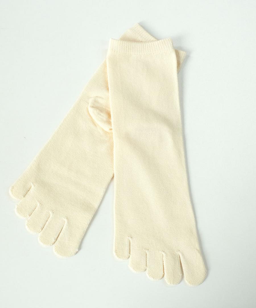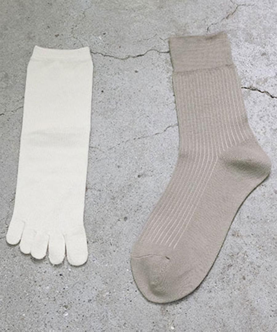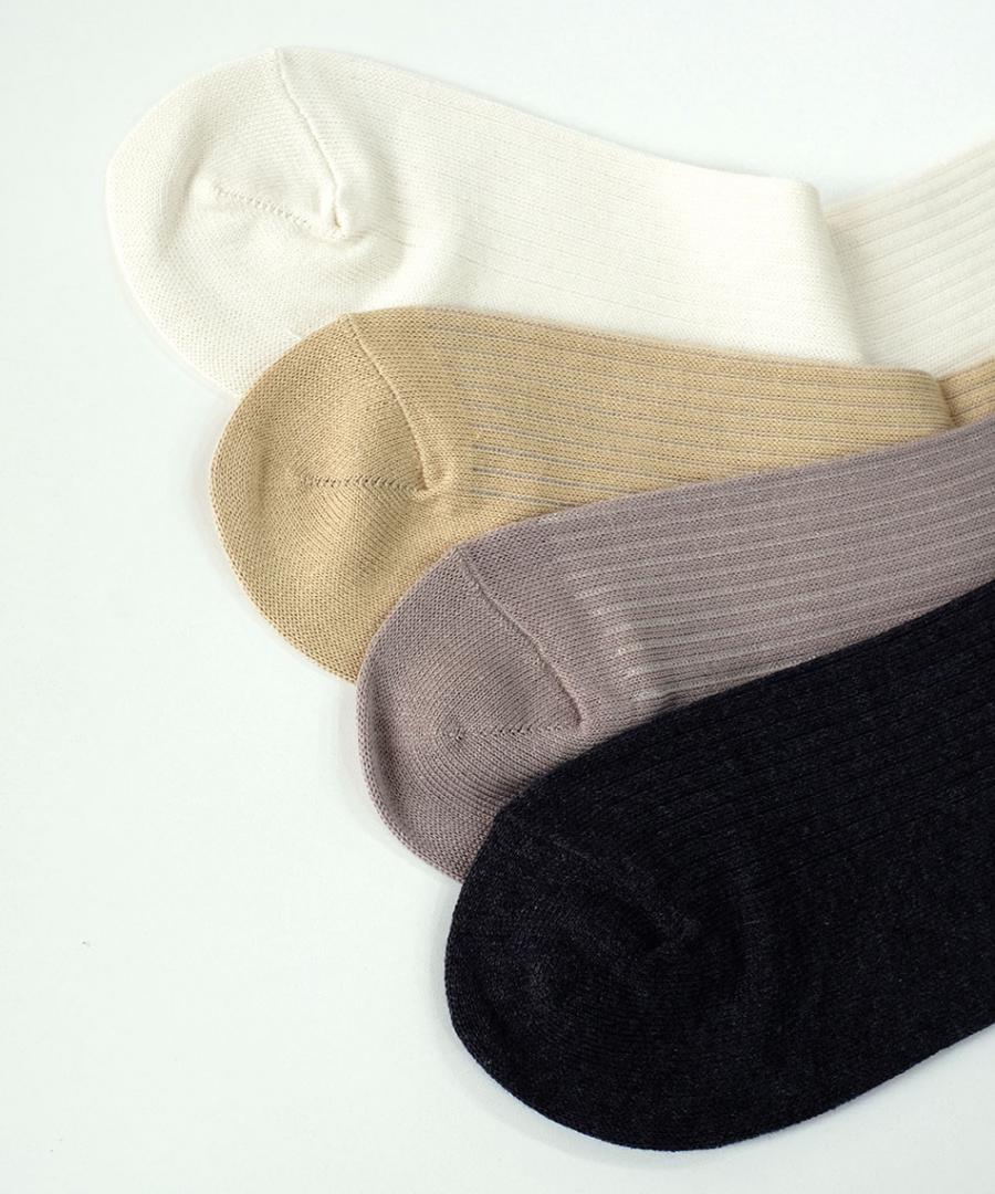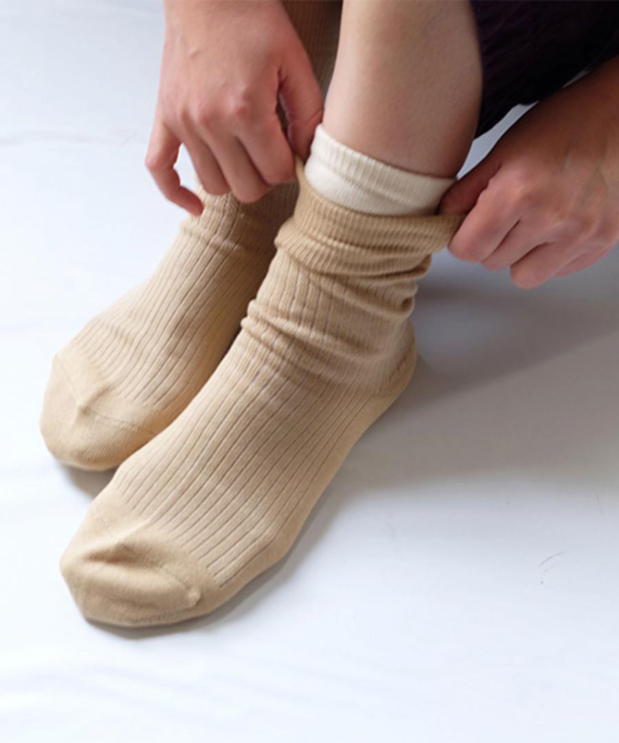 使用した絹紡糸はやわらかな肌触りと光沢があり、吸湿や吸汗性に優れ、さらりとした履き心地が特徴です。
