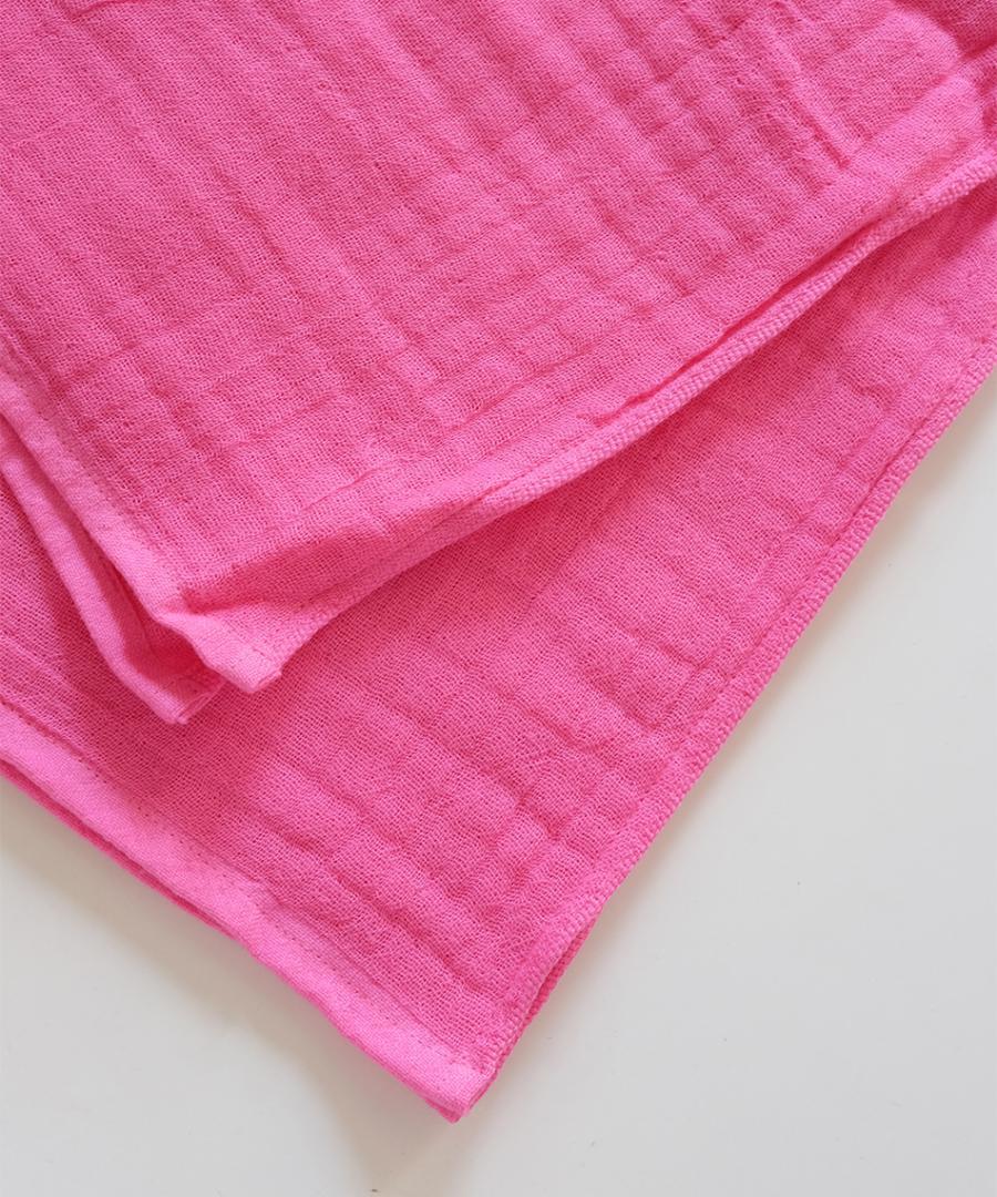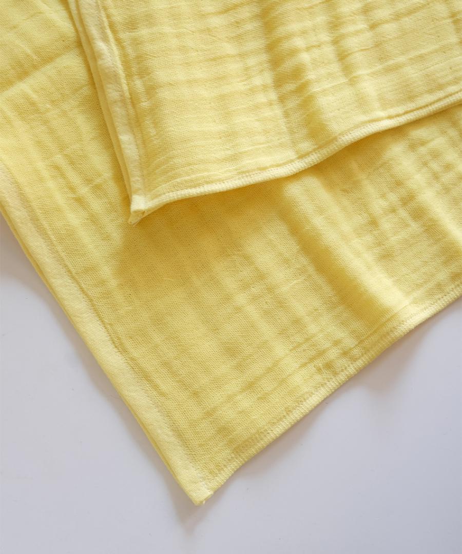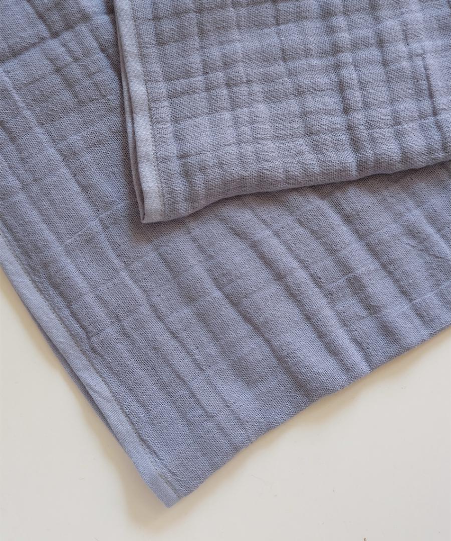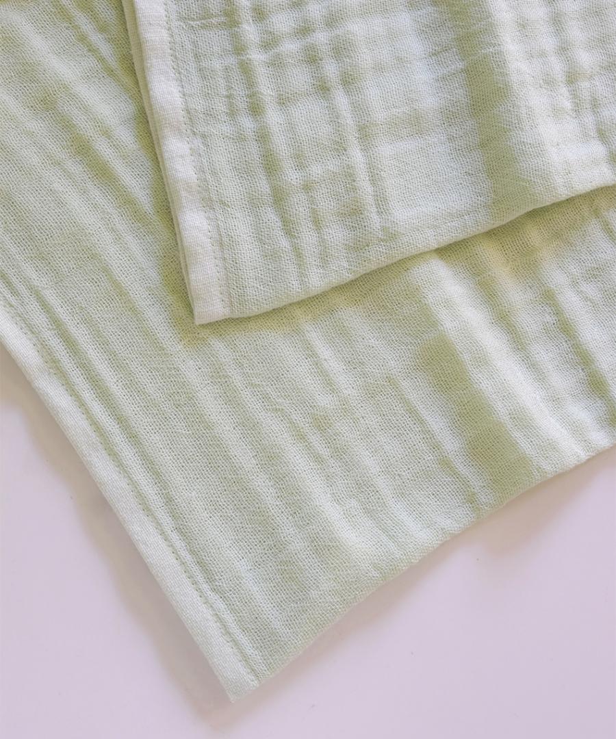 オーガニックコットンを使用したおくるみは、 愛媛県今治で丁寧に織った三層ガーゼ生地を使用しています。