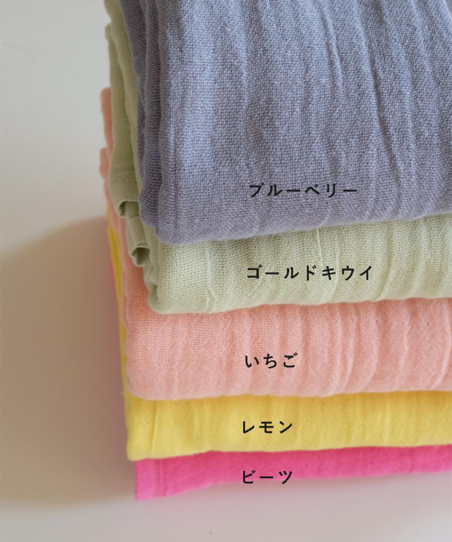野菜や果物から色素を抽出し、天然の染料を作るボタニカルダイという技術で染めていて赤ちゃんの肌にも優しく安心な逸品です。