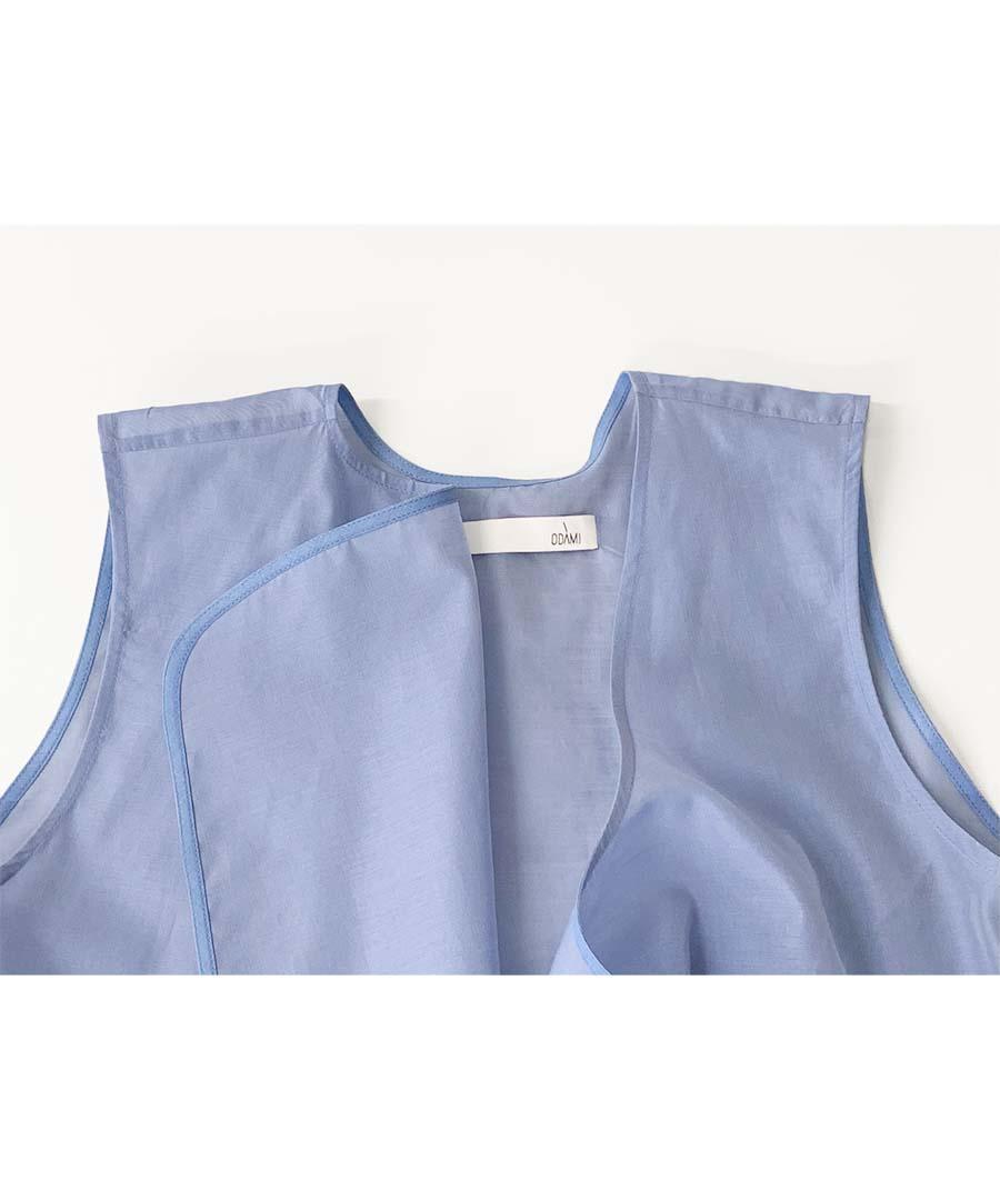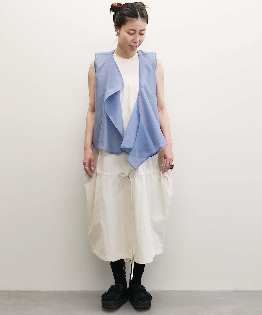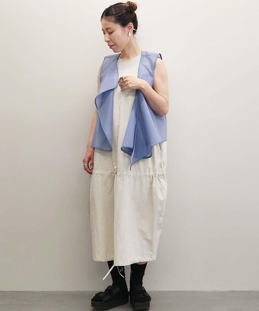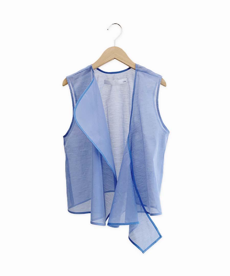 ほんのりと透けるオーガンジー生地が美しいジレ。