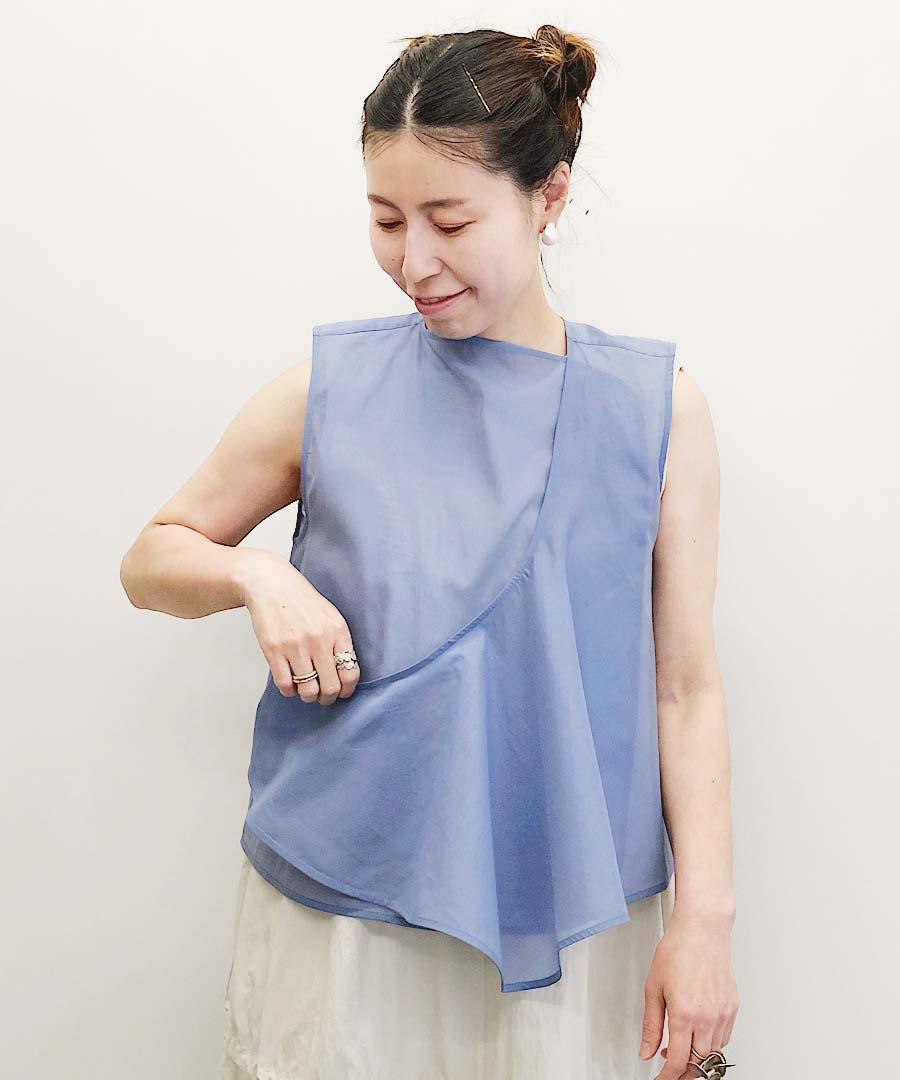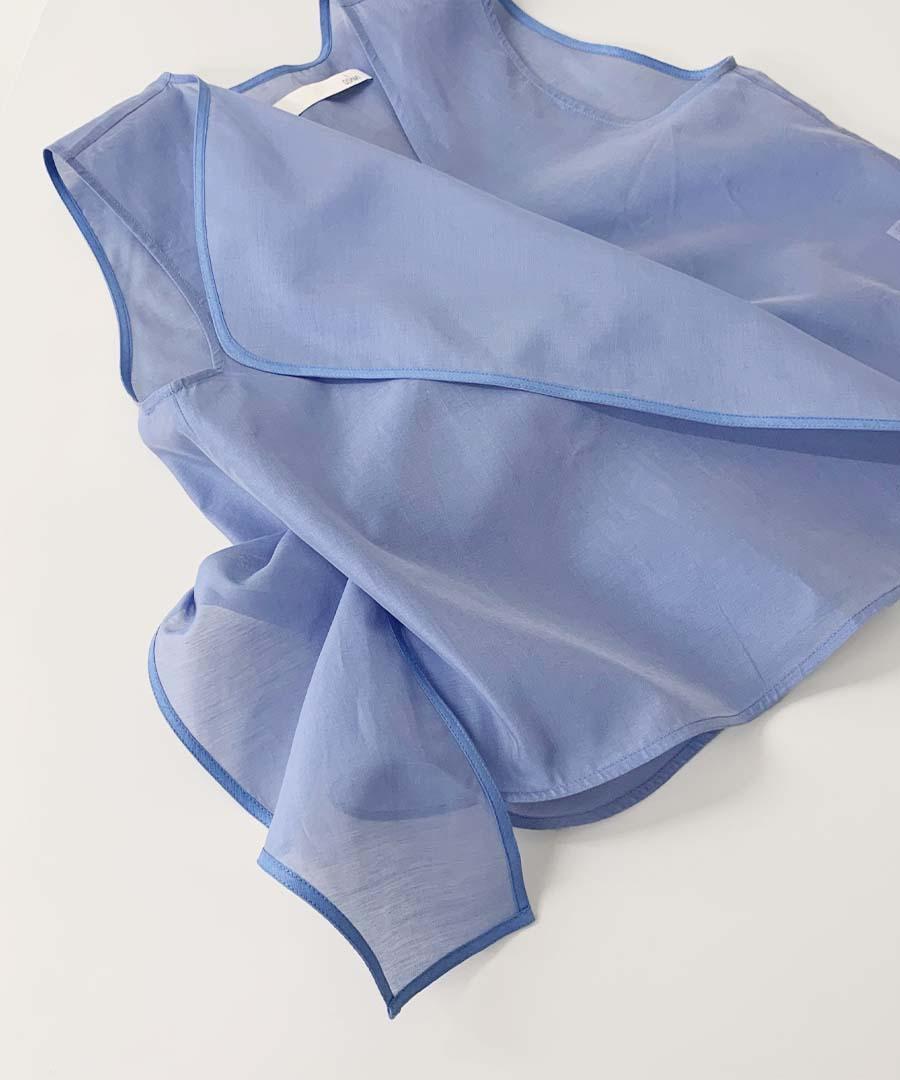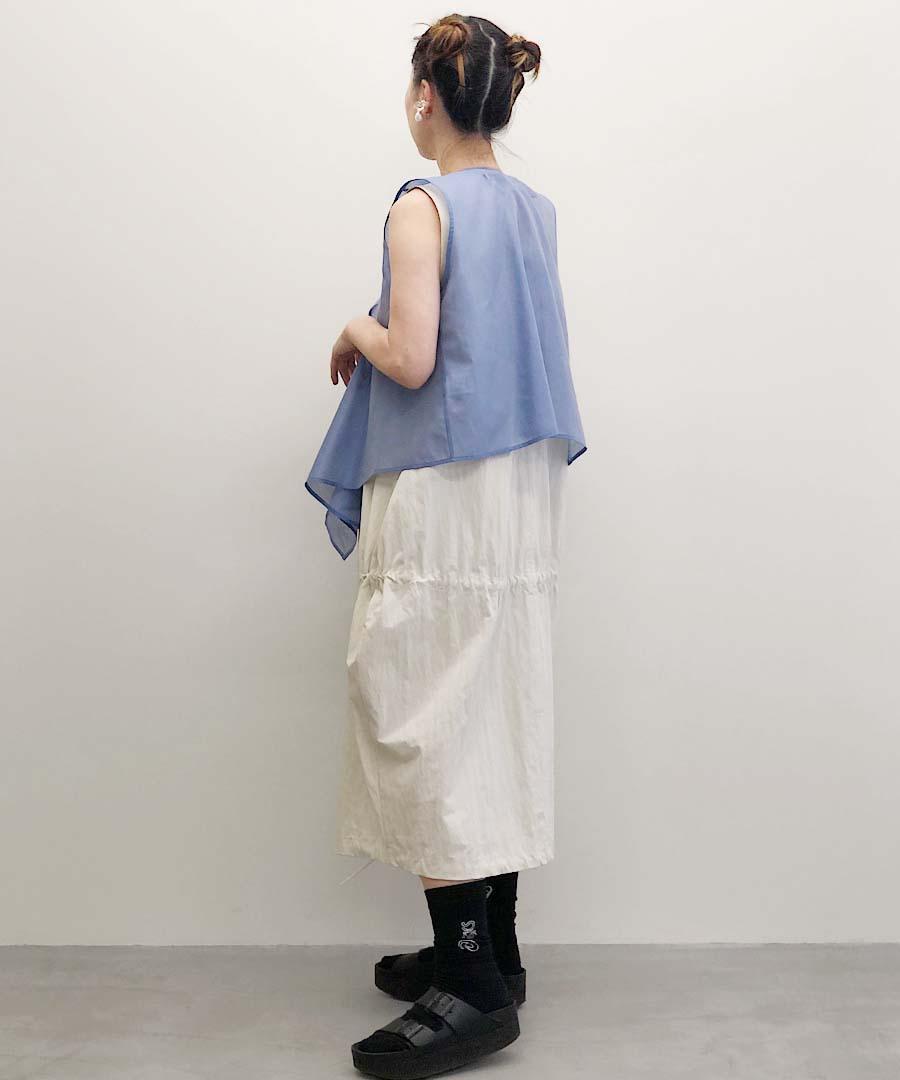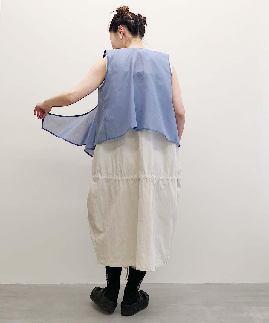 ほんのりと透けるオーガンジー生地が美しいジレ。