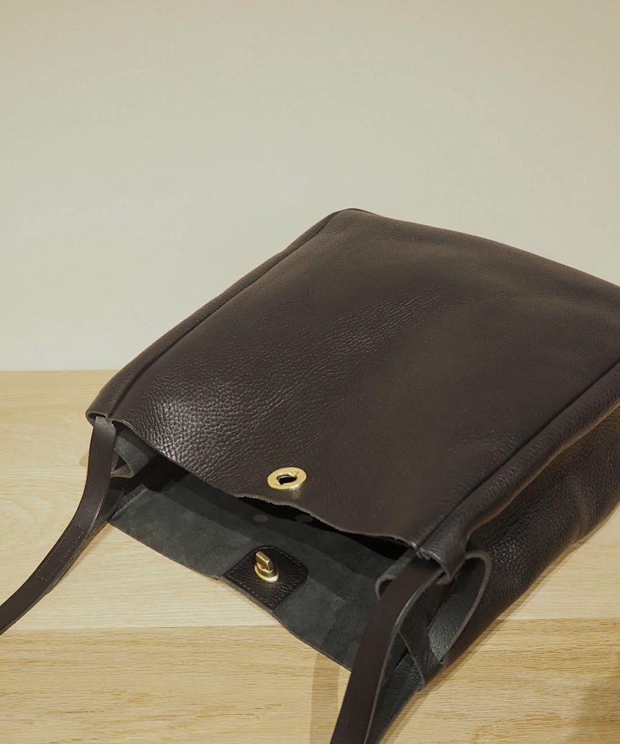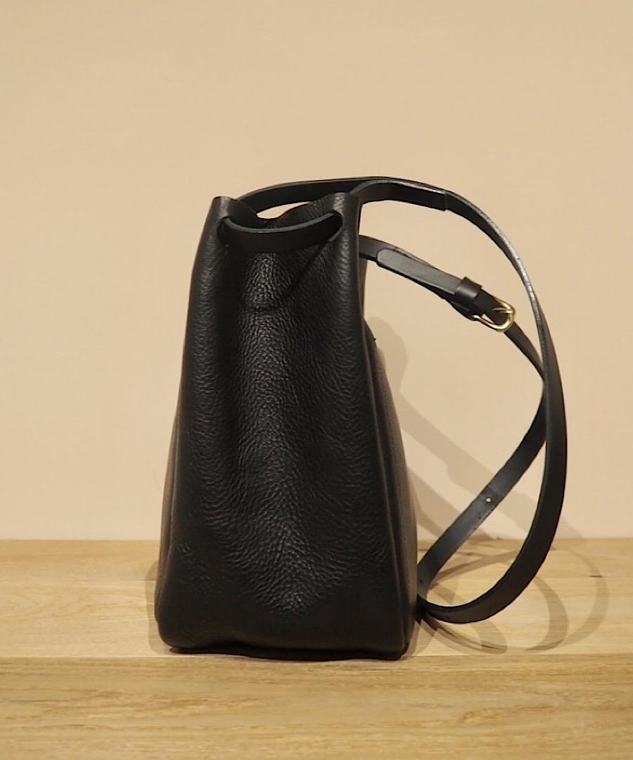 調節可能なレザーショルダーストラップで、肩掛け、斜め掛けが可能です。