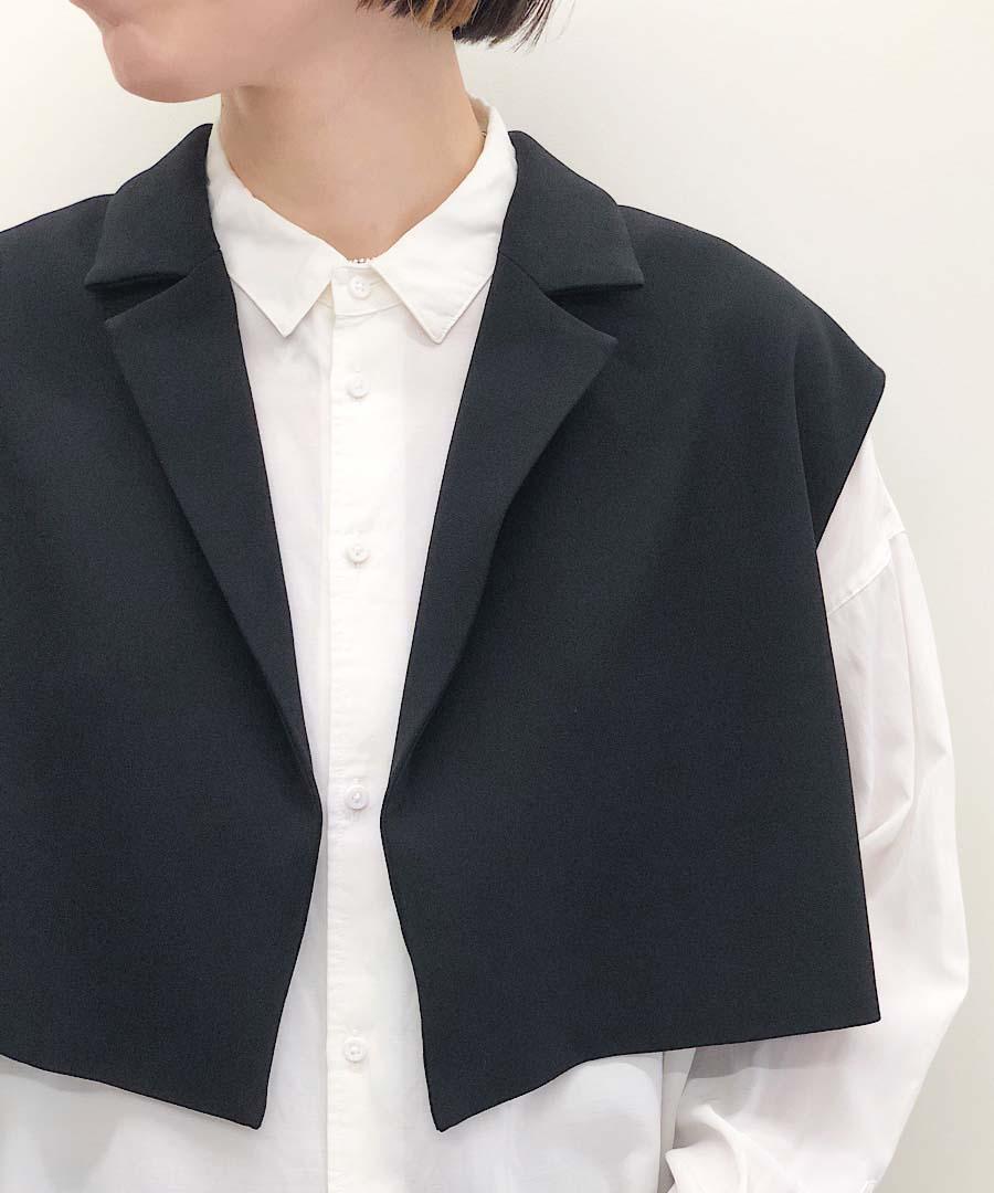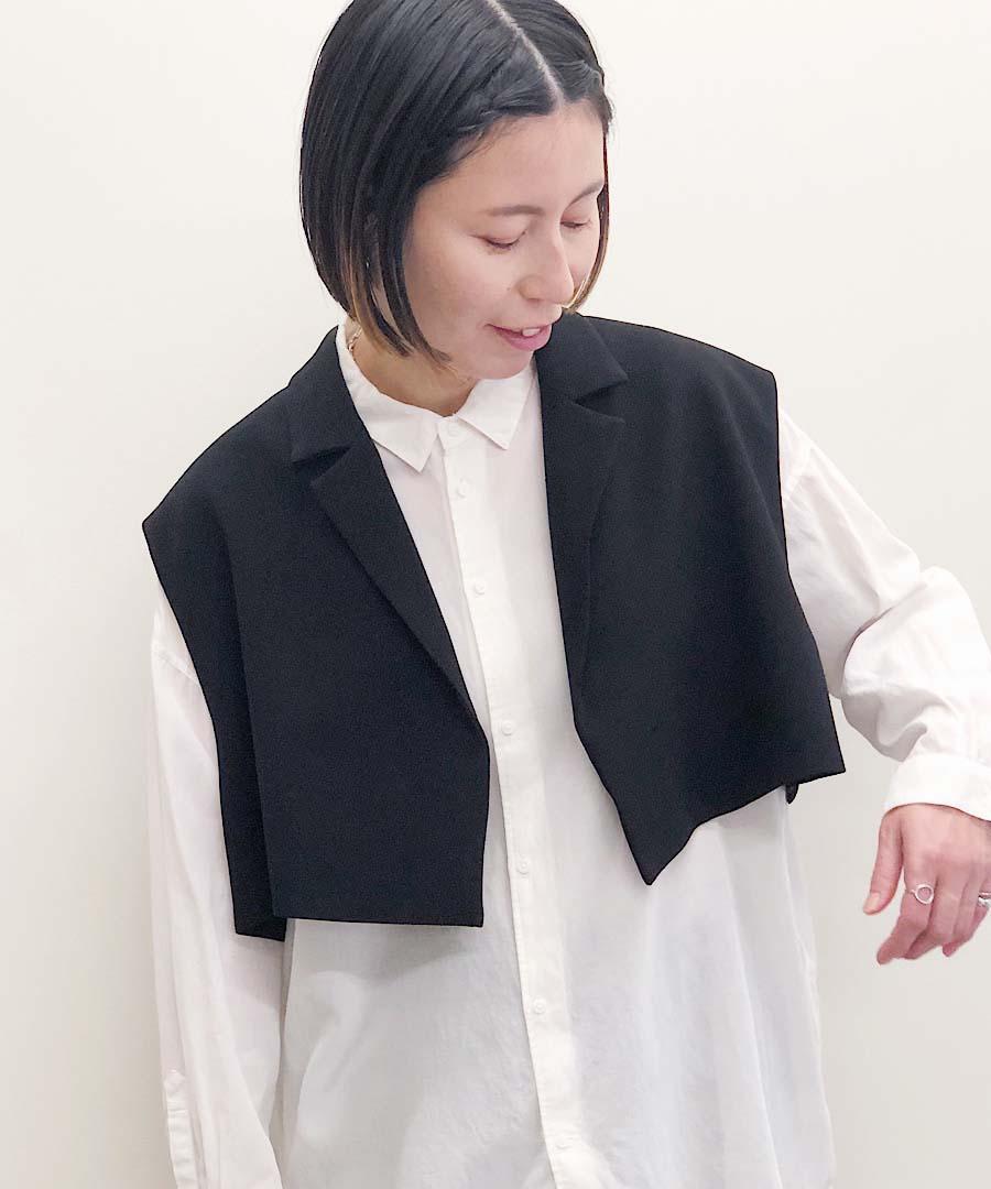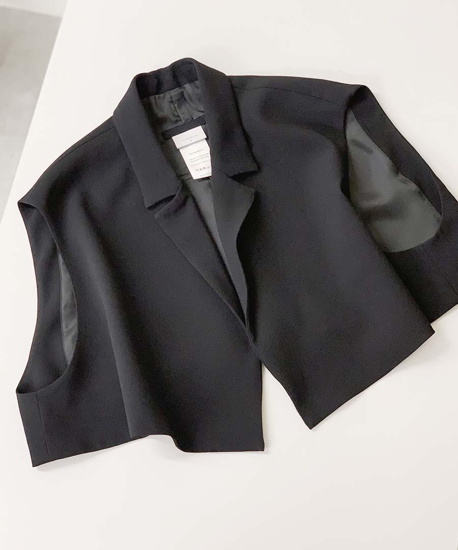 シンプルなデザインのショート丈ベスト。