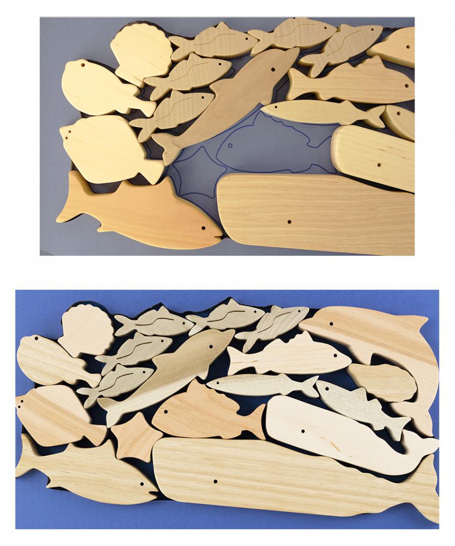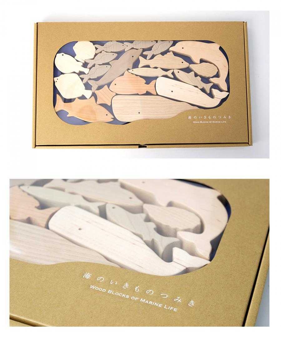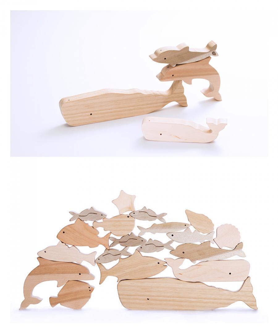 海のいきものたちの積木を、飛騨高山の職人さんがつくりました。