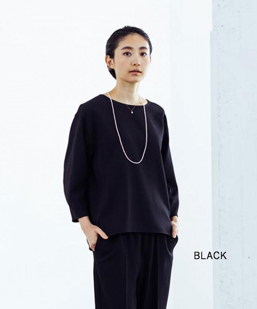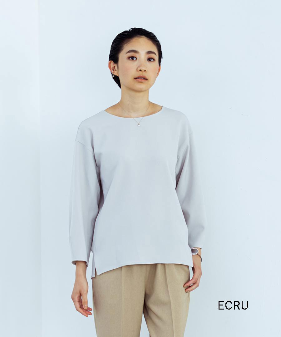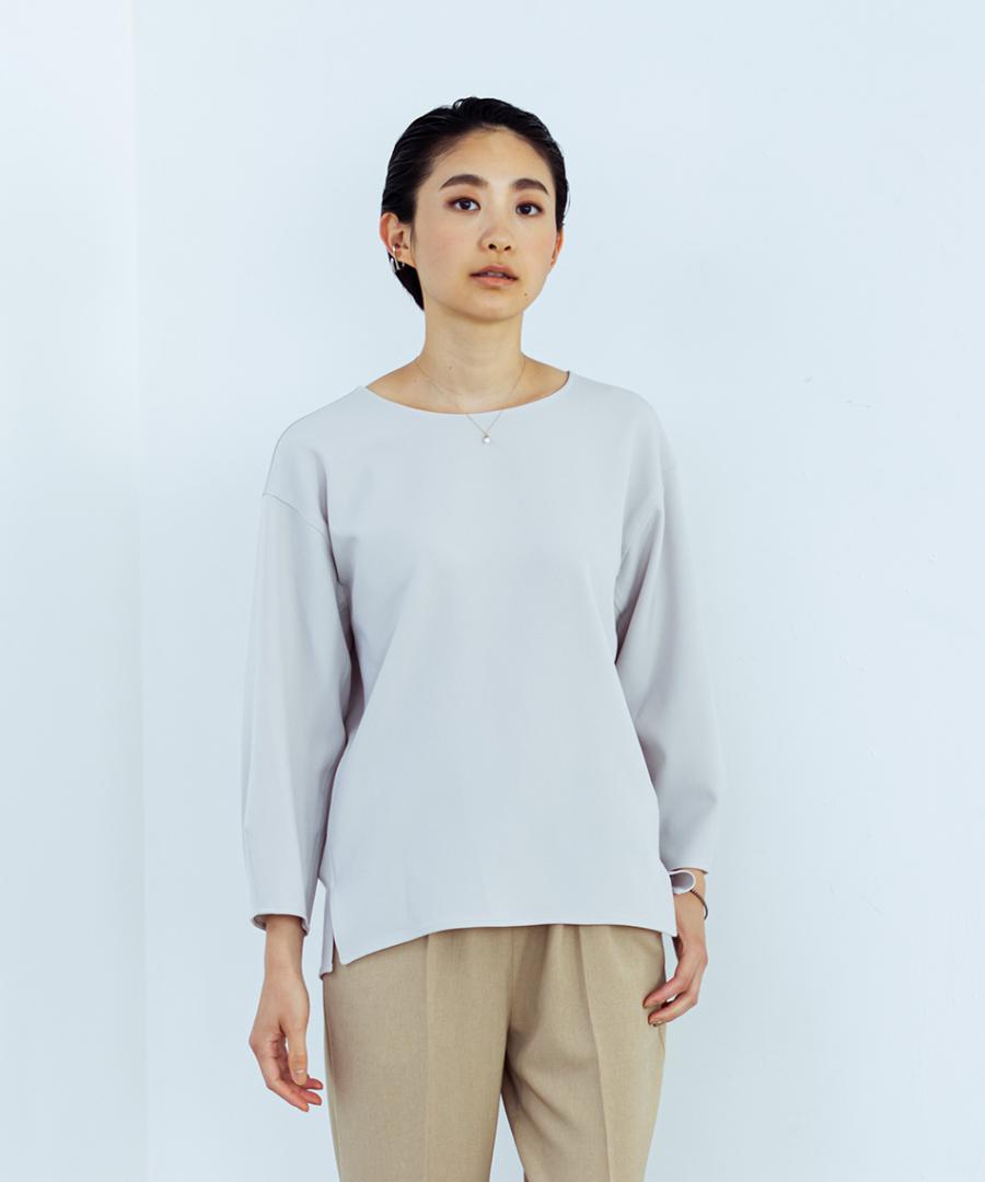 ざっくりとしたボートネックが特徴のプルオーバーブラウス。