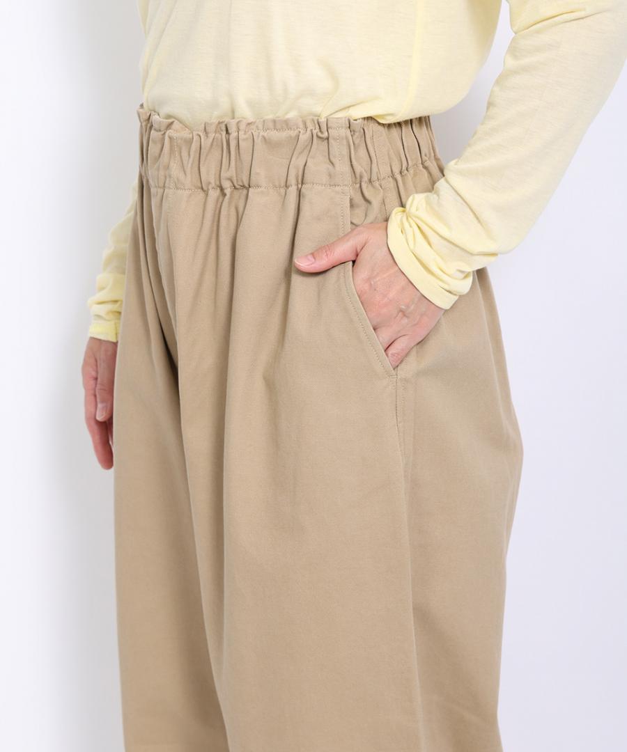 素材にはシーズンレスで使えるチノクロスを使用、ストレスフリーで穿くことが出来るゴムウエストというのも魅力です。