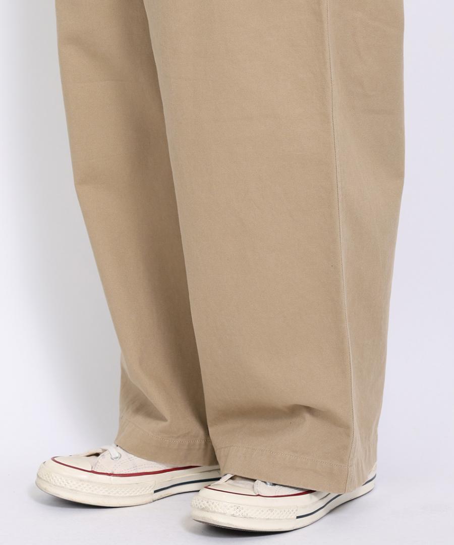 ゆったりとしたリラックス感のあるシルエット、トップスをパンツにインした着こなしの際に足が長く見えるように股上は深め仕上げています。
