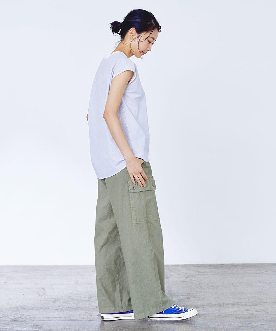 ワークテイストなサイドの2つの大き目フラップポケットがポイントになってくれます。