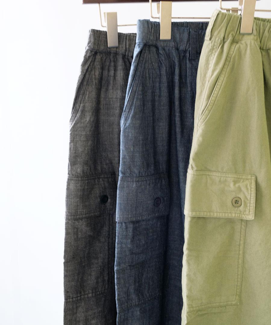 麻特有のスラブ感が表情豊かな、ライトオンスのコットンリネンデニム素材のイージーワークパンツです。