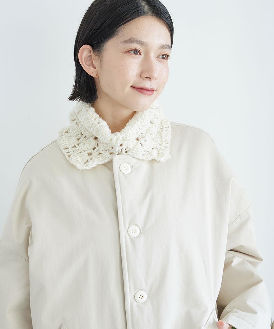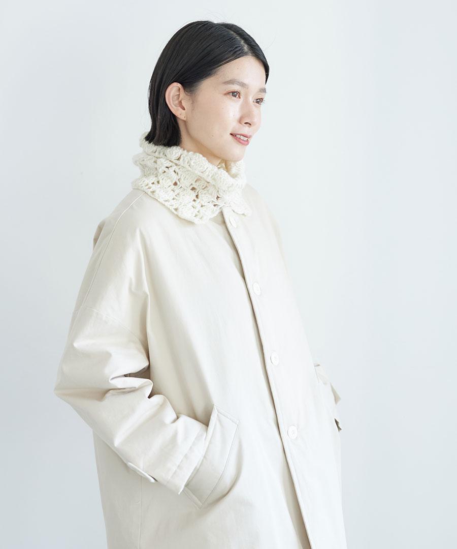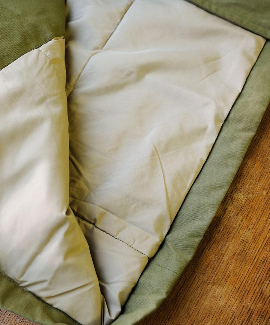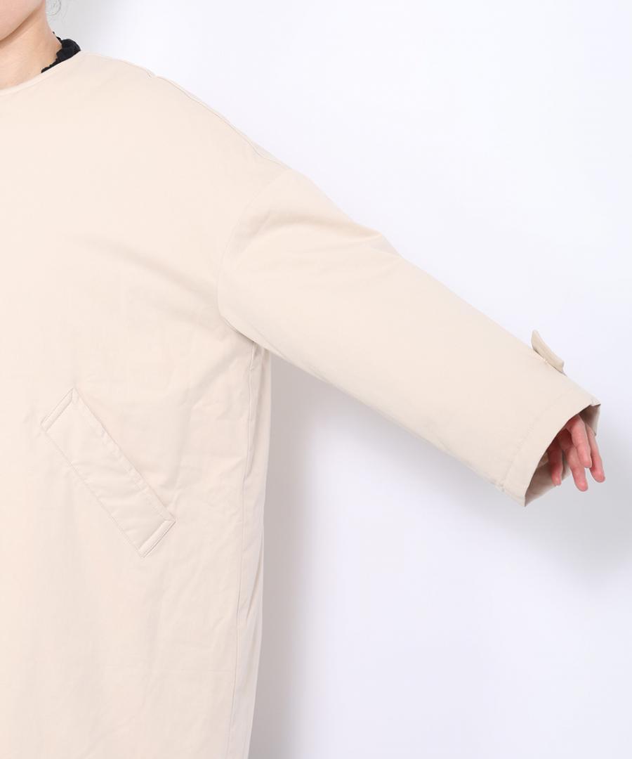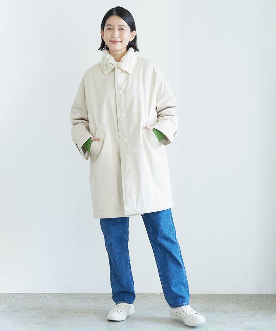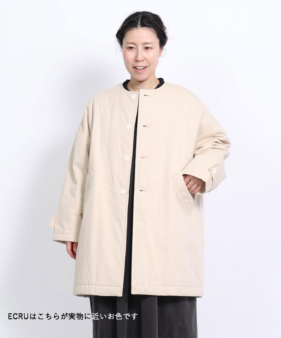 シルケットツイル生地に薄い中綿を内蔵したワイドコート。