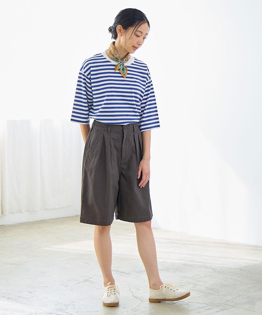強撚糸を使用したドライタッチでシャリ感のあるコットンオックス素材のショートパンツ。