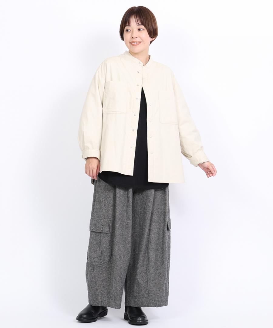 表地には綿100%のタイプライター生地を使用して、シャツのような感覚で羽織れるアウターです。