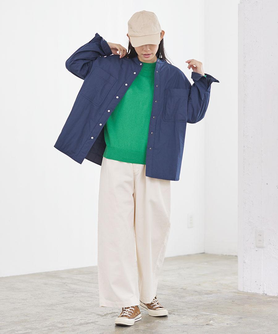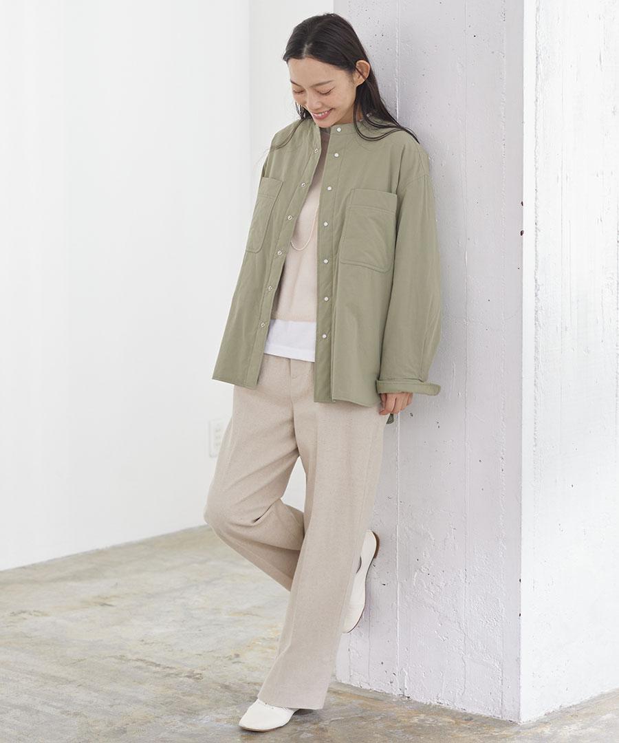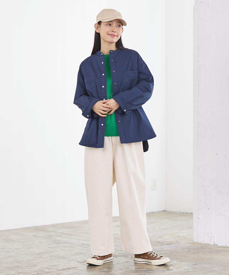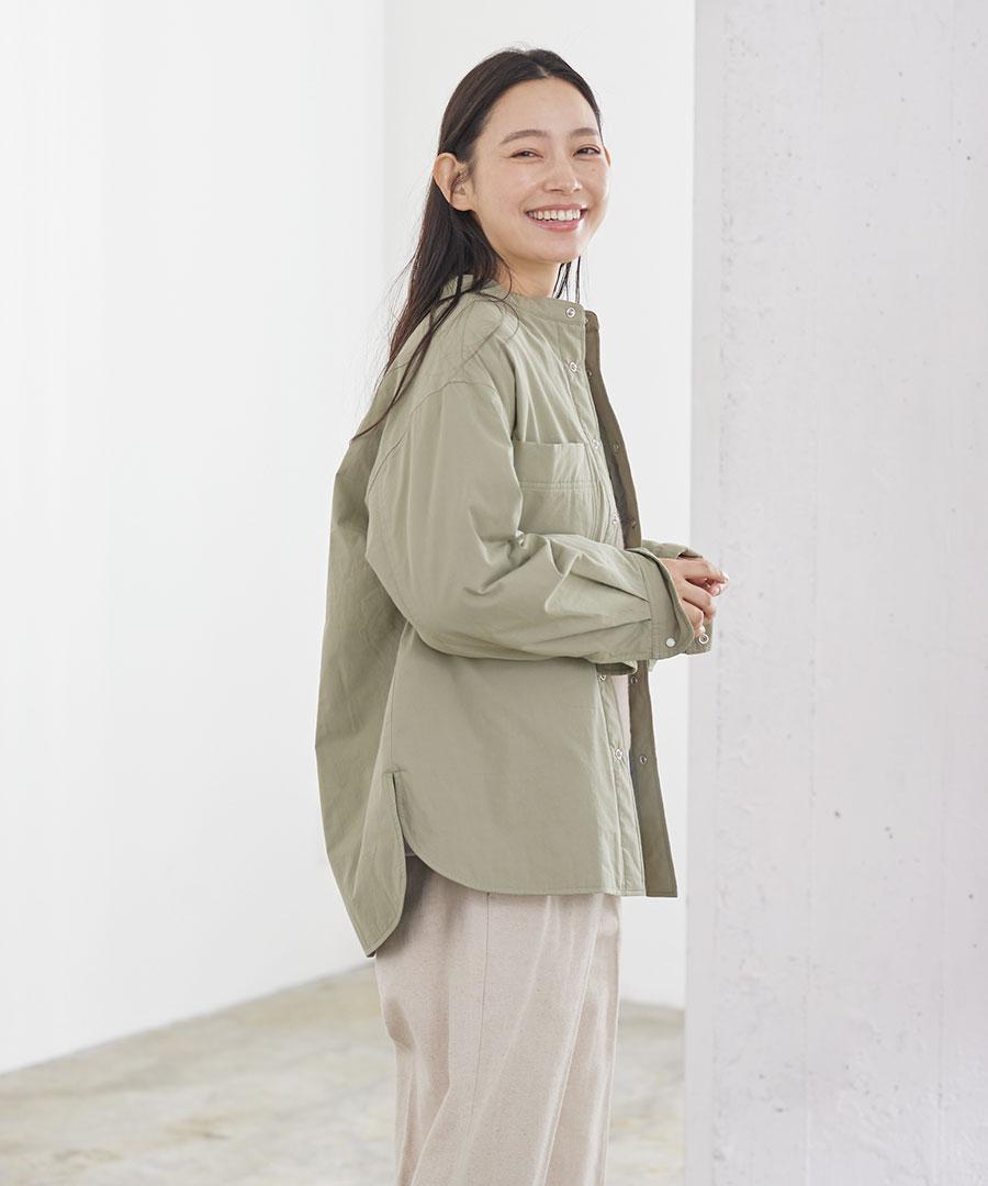 スタンドカラーで首元すっきり。