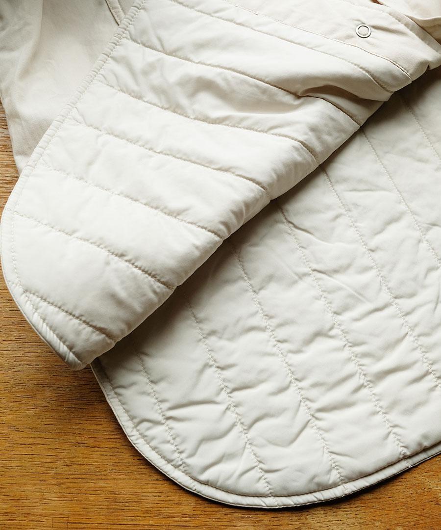 軽くて暖かい薄手の中綿入りアウター。