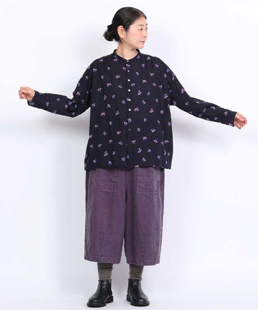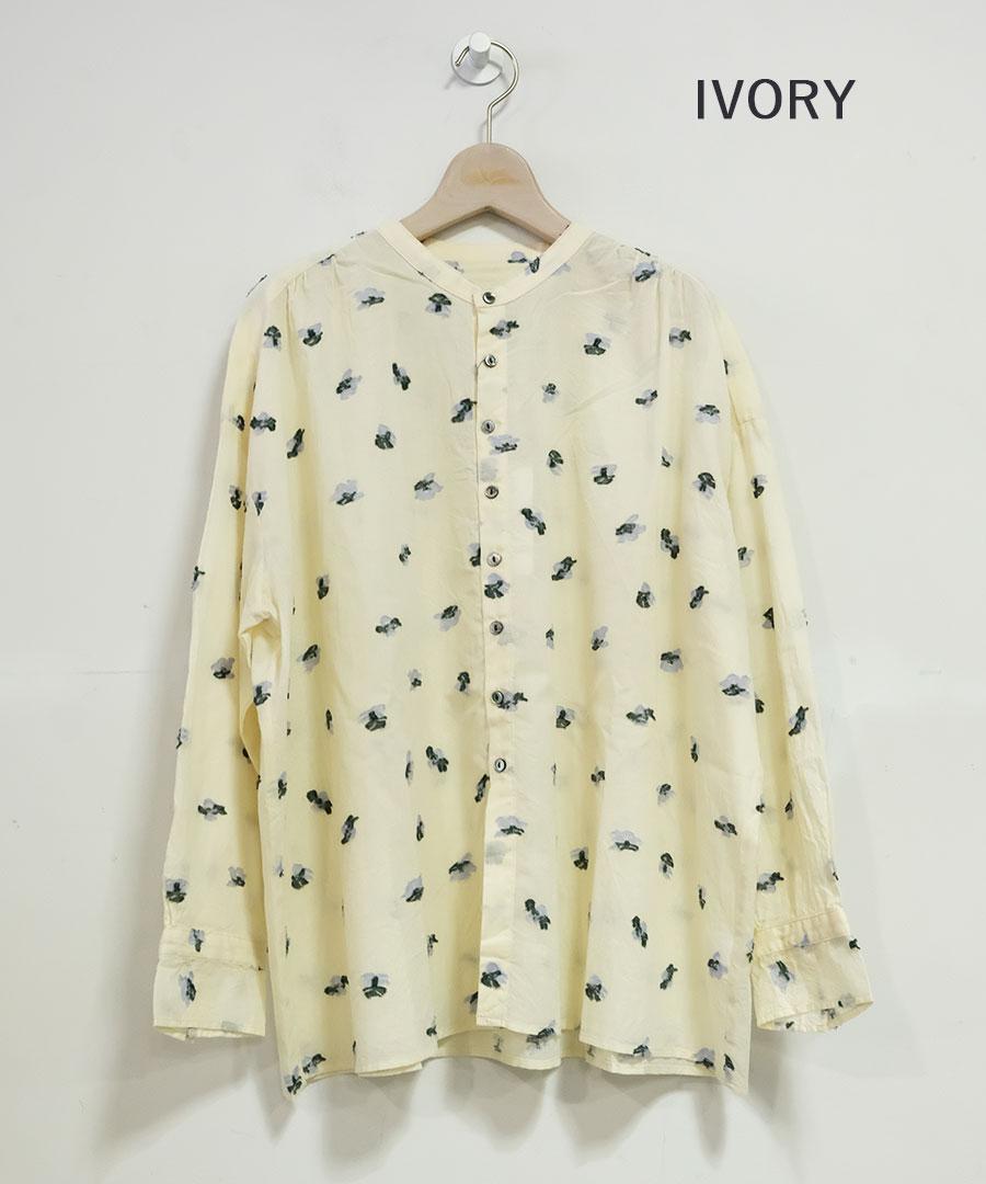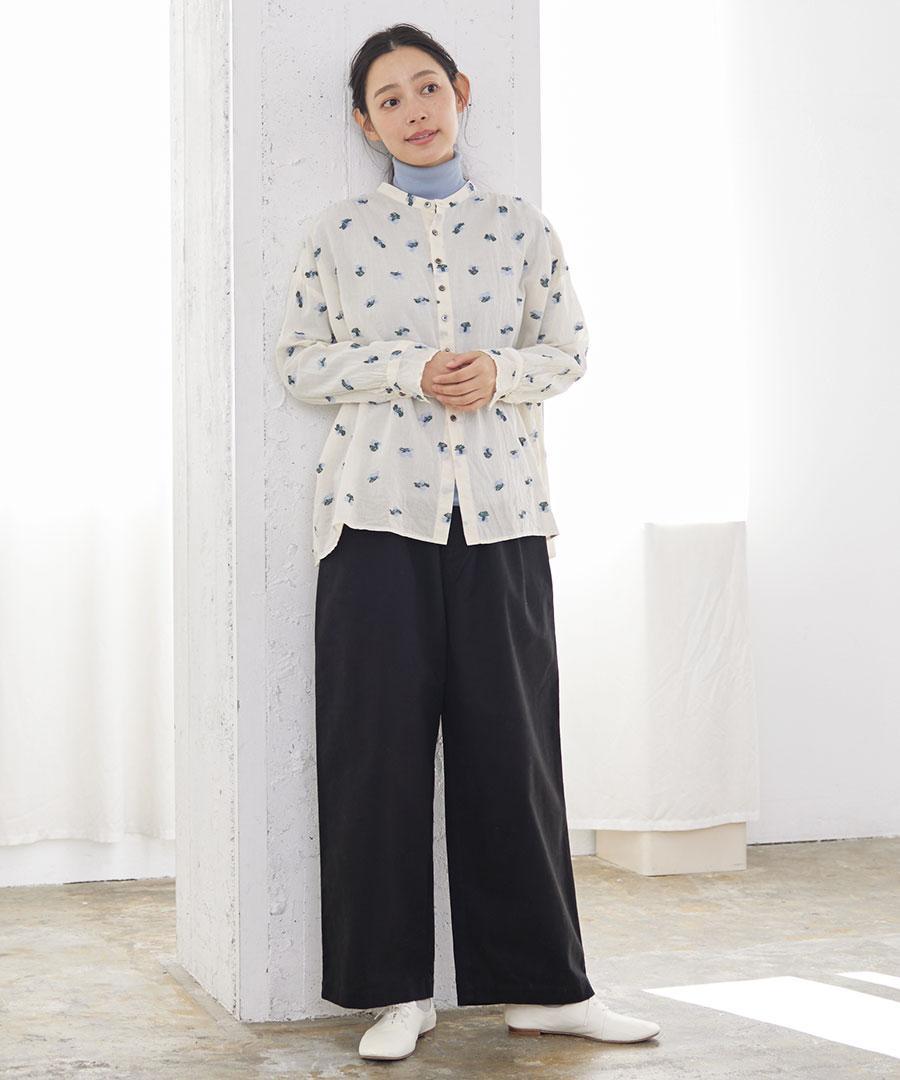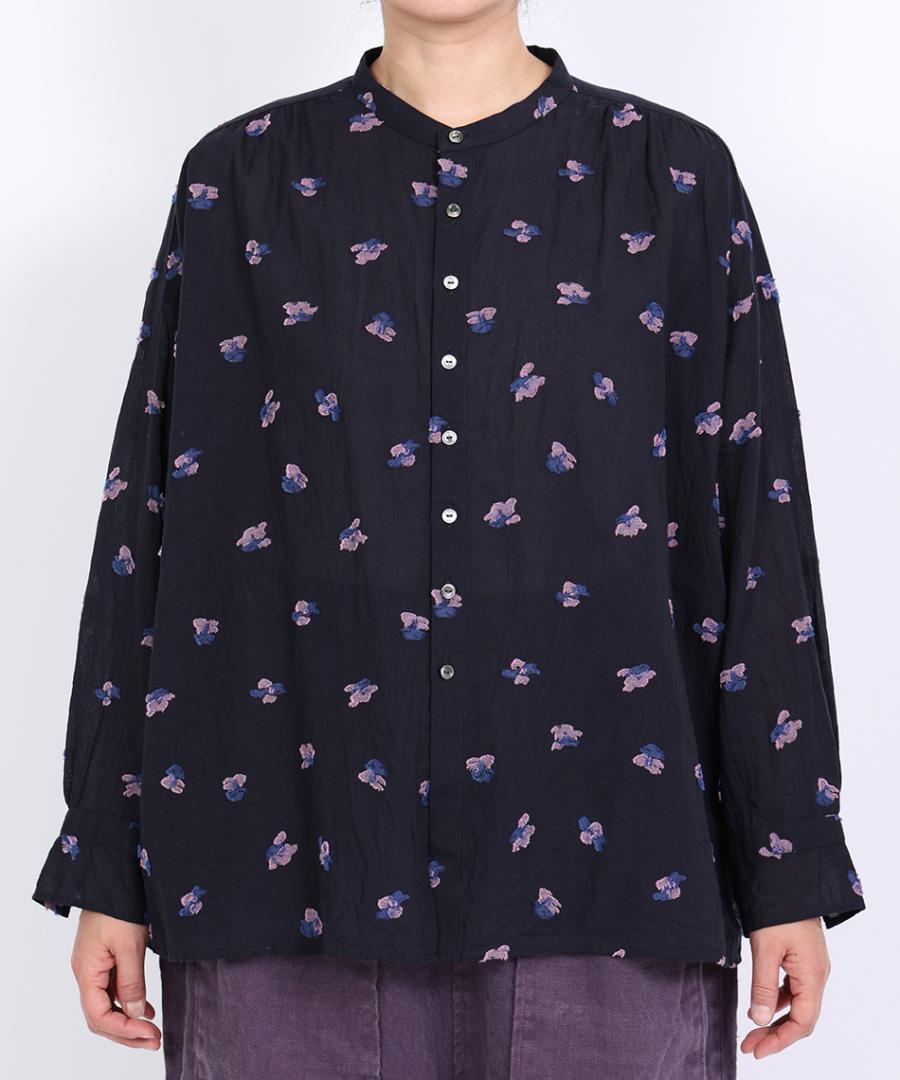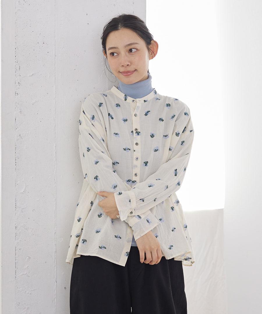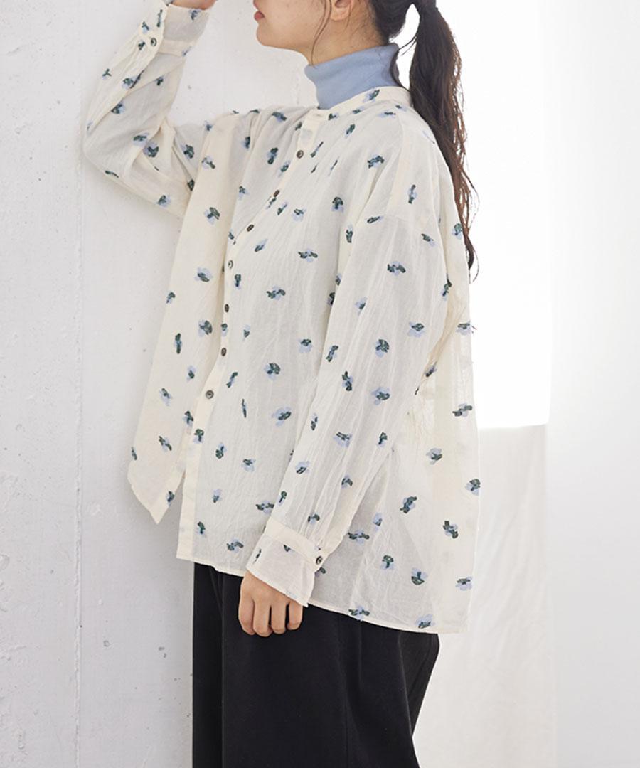 カットジャガード スタンドカラーブラウス