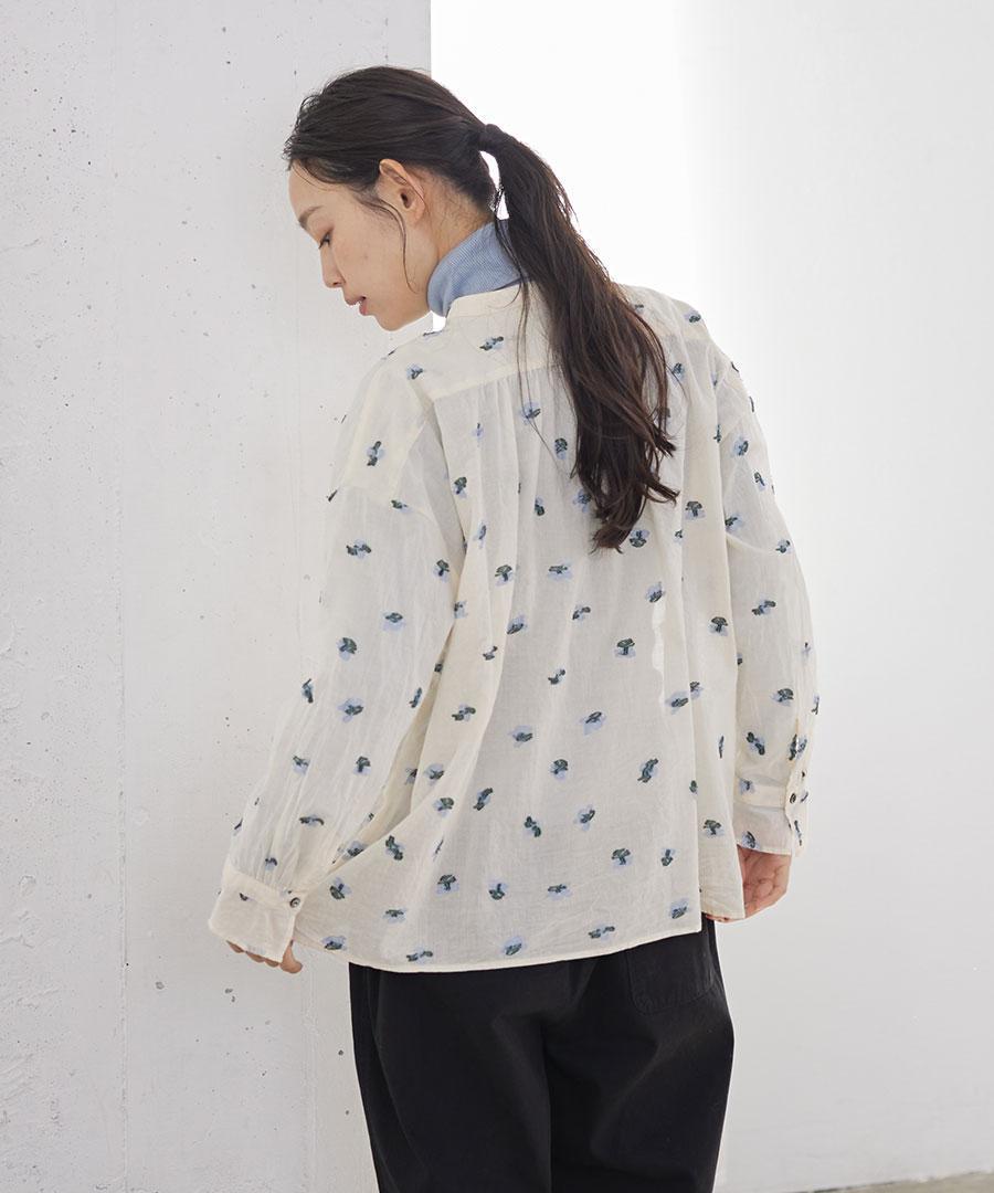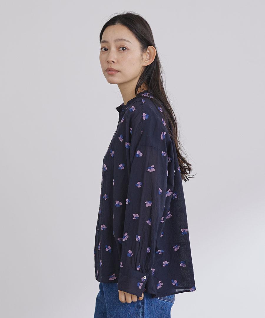 柔らかく軽やかなコットンベースのカットジャガード生地で仕立てたブラウス。