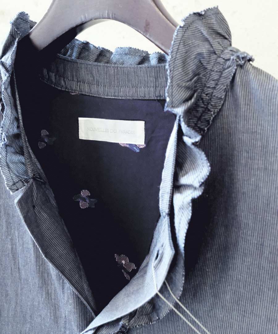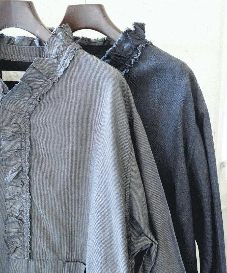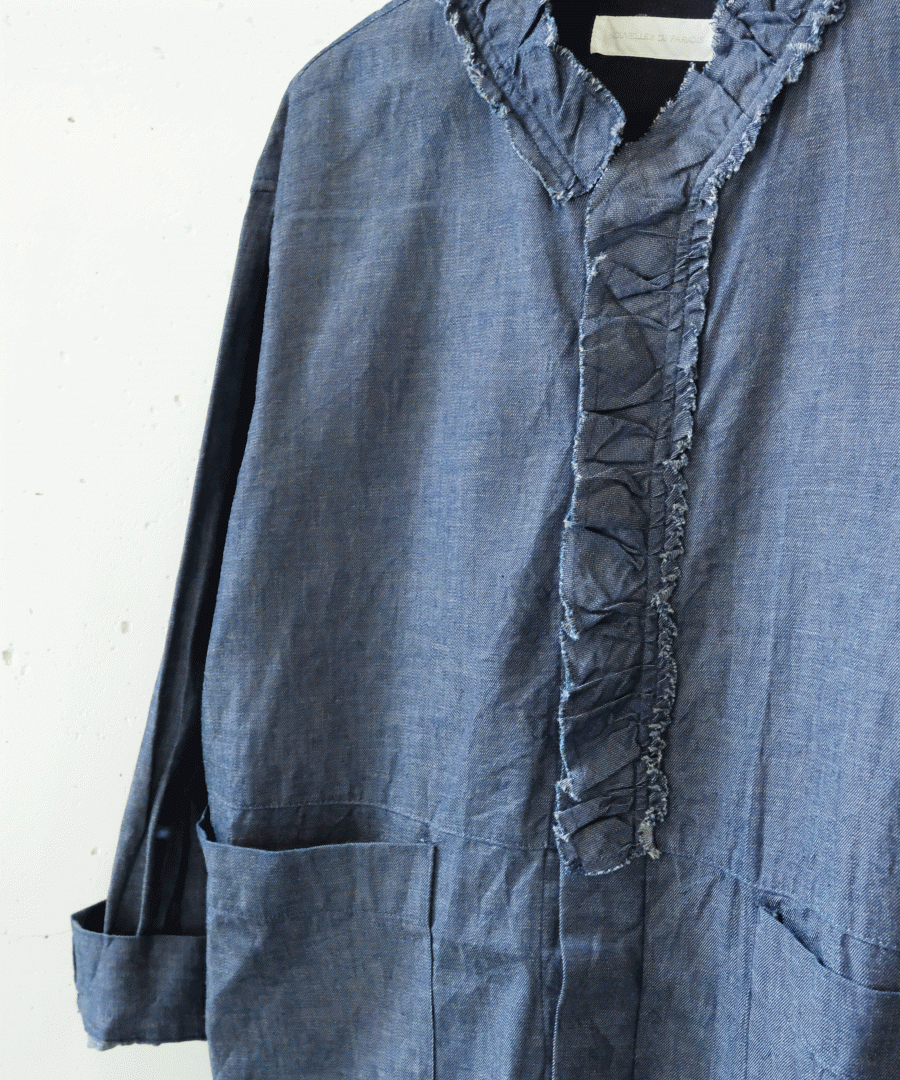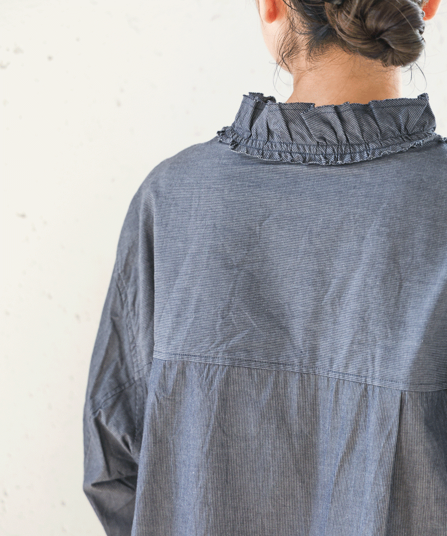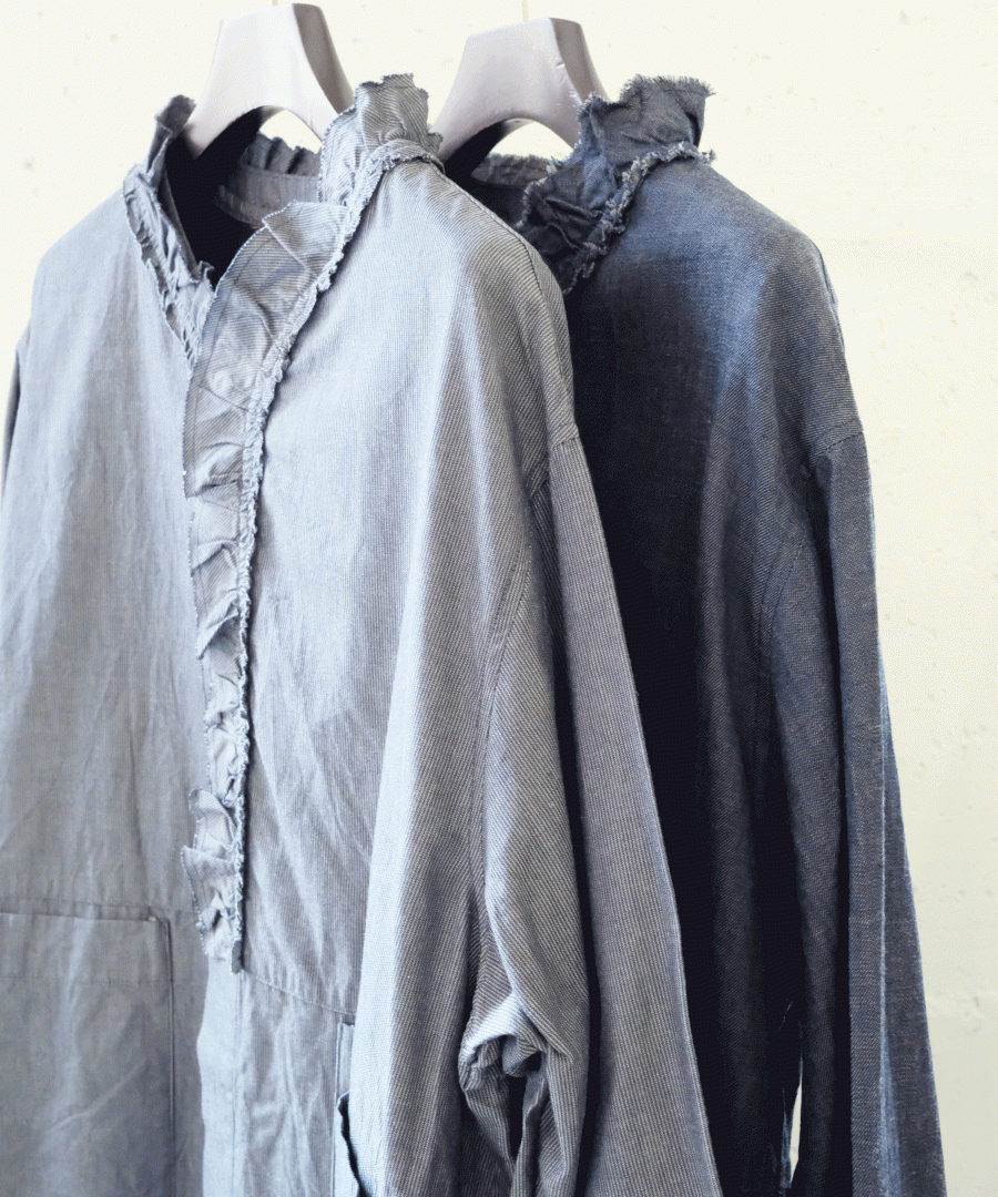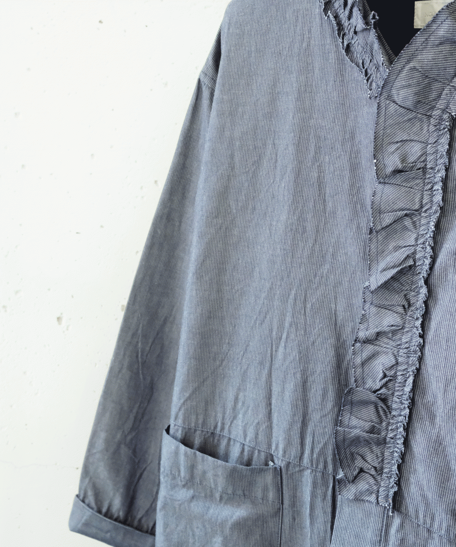 衿はしを断ち切りにして洗いをかけてラフな印象にしました。