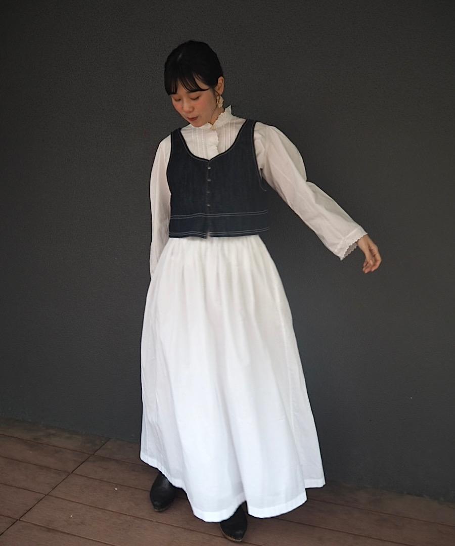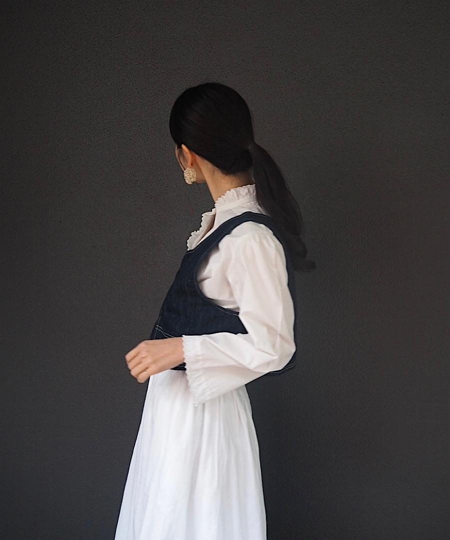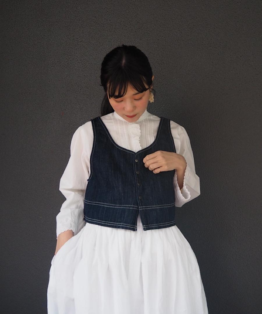 Tシャツやブラウス、ワンピースにさっと羽織るだけで、気軽にレイヤードスタイルを楽しめる万能アイテムです。