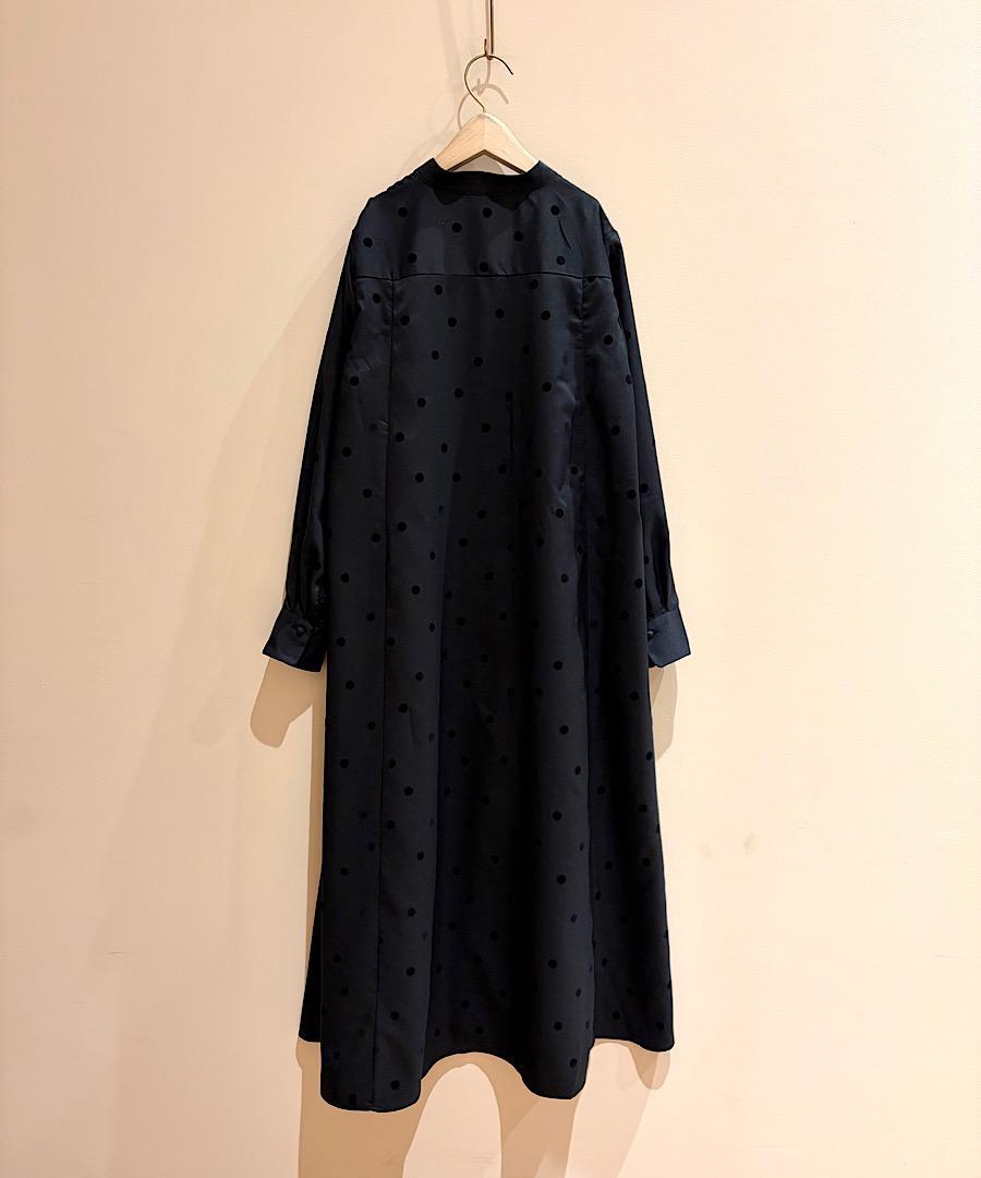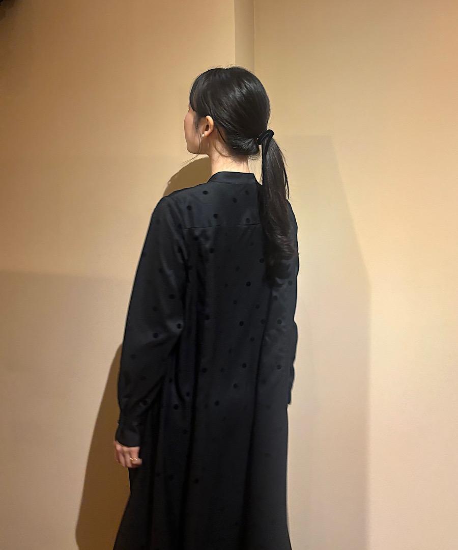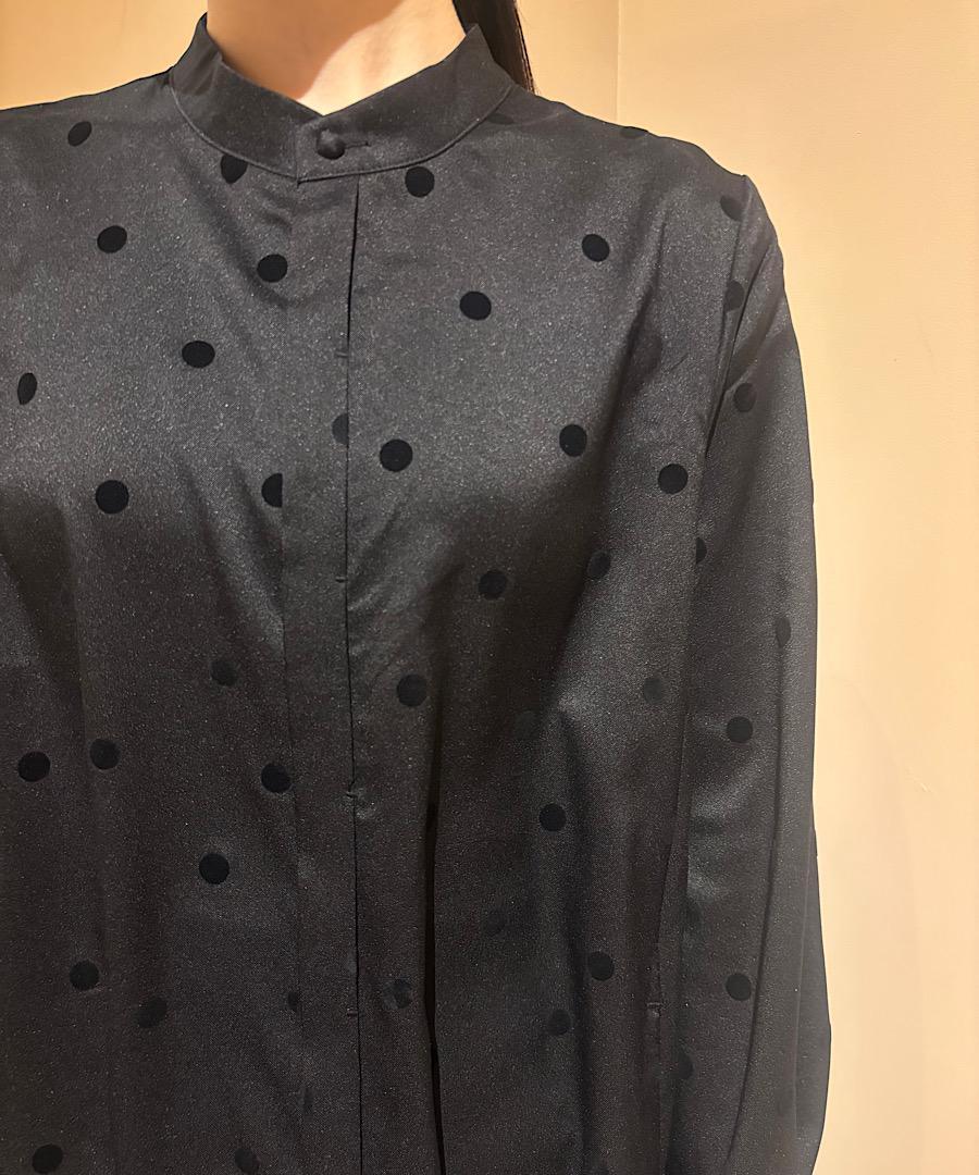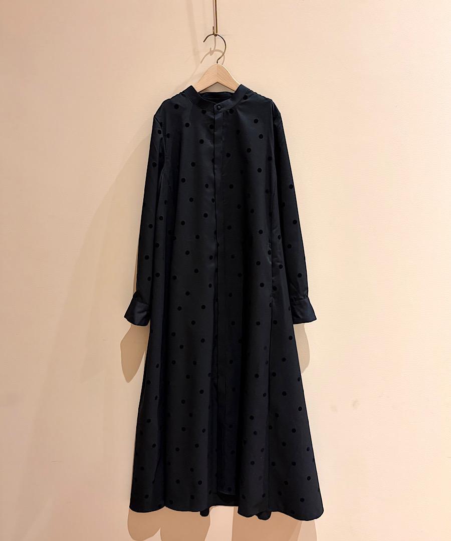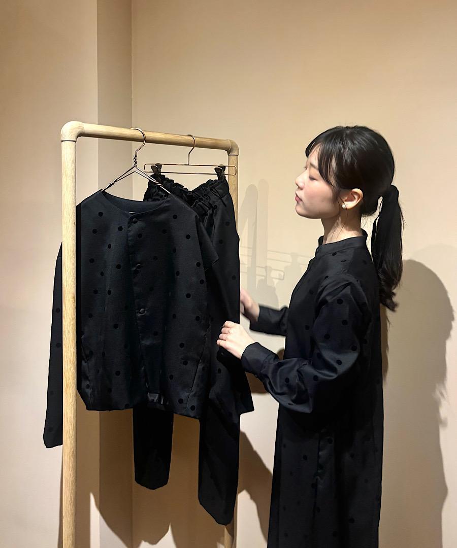 軽くてサラッとした肌触りが心地よいツイル生地にドット柄のフロッキー加工を施しました。