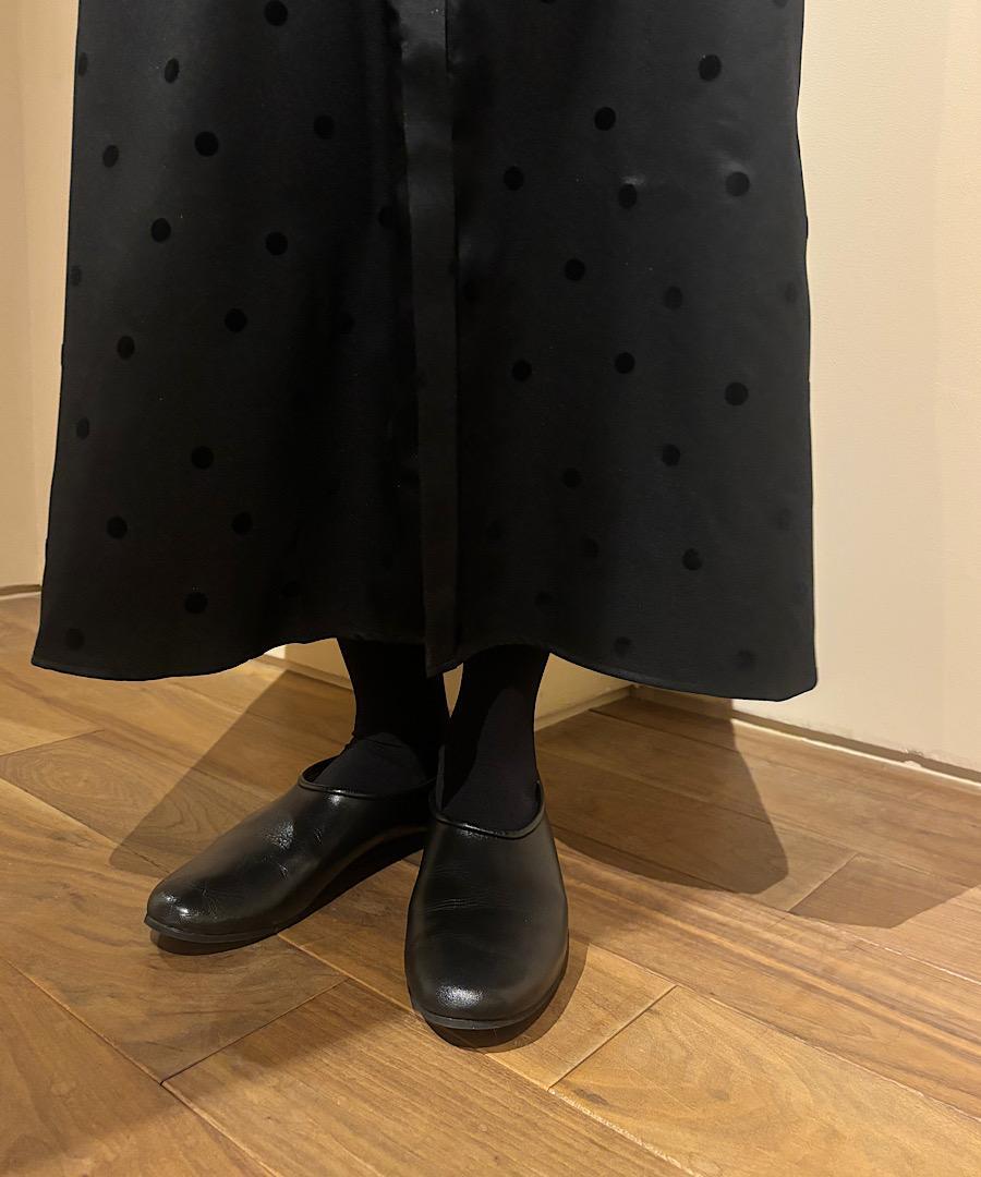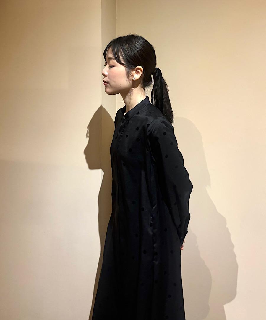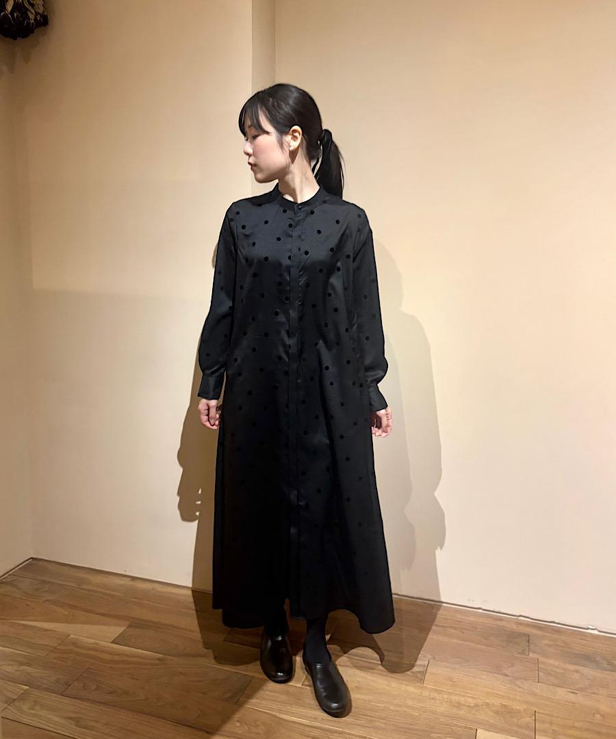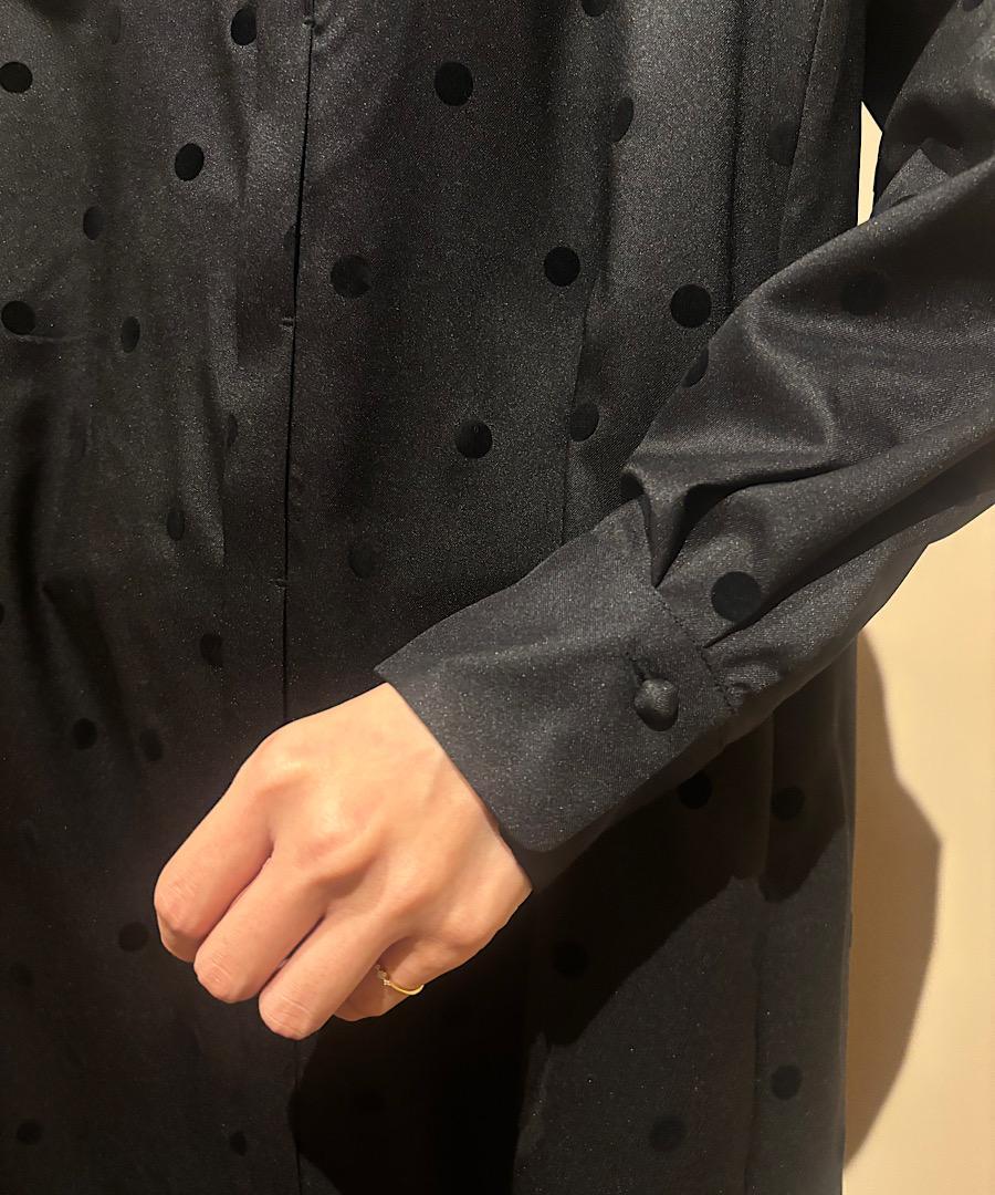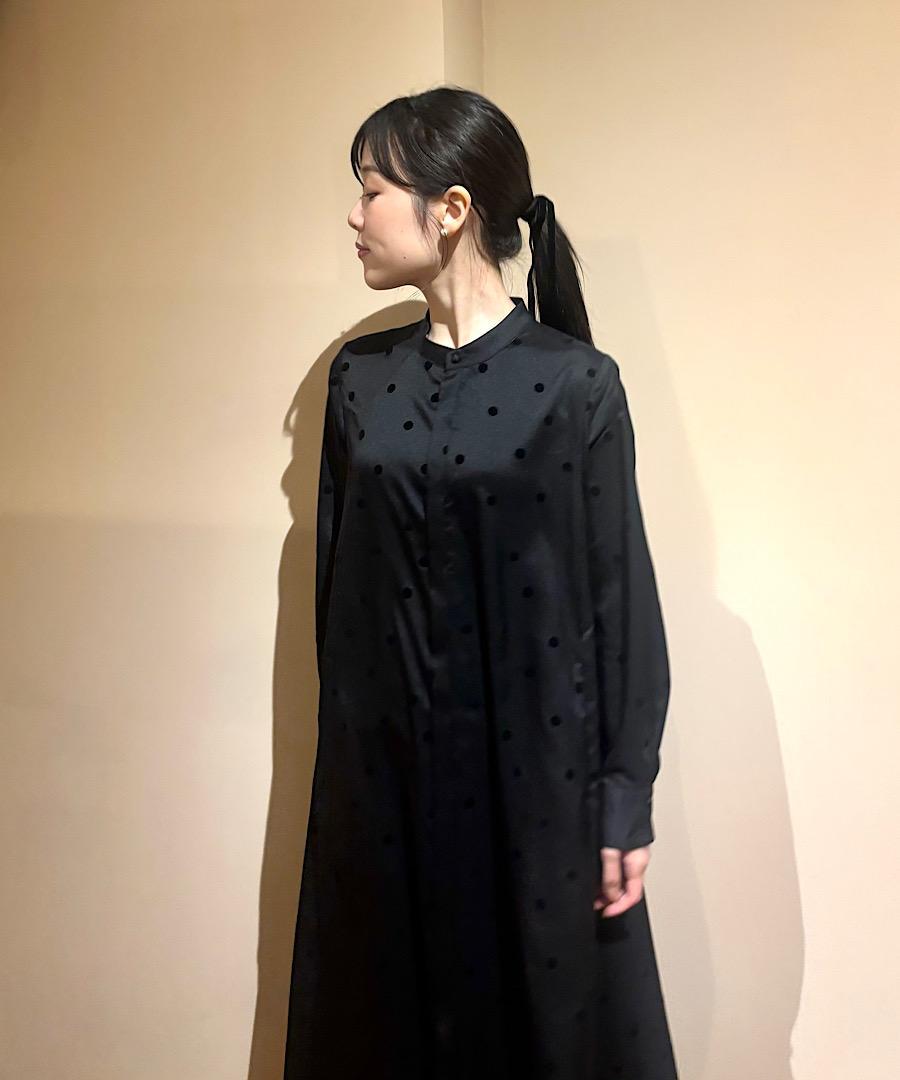 軽くてサラッとした肌触りが心地よいツイル生地にドット柄のフロッキー加工を施しました。
