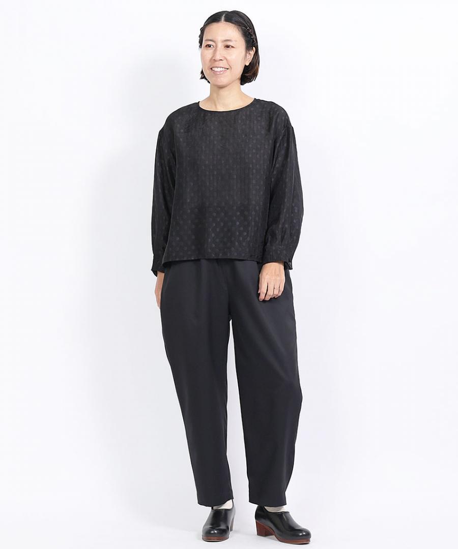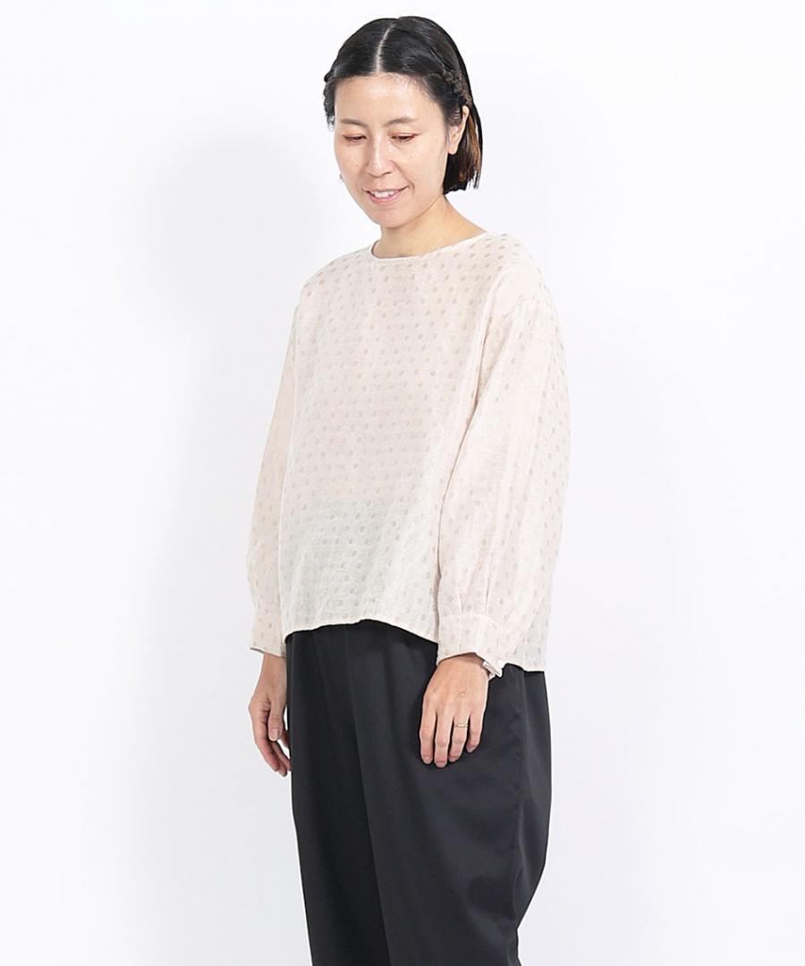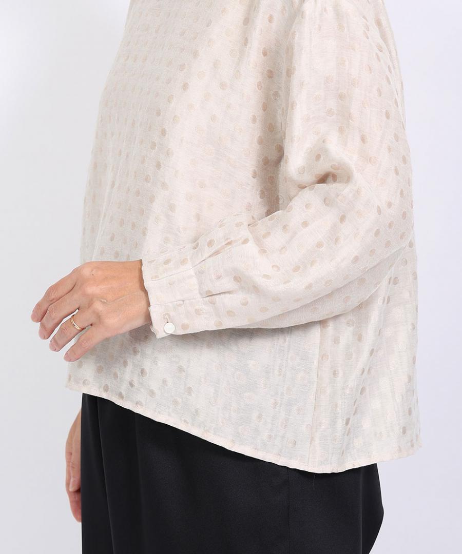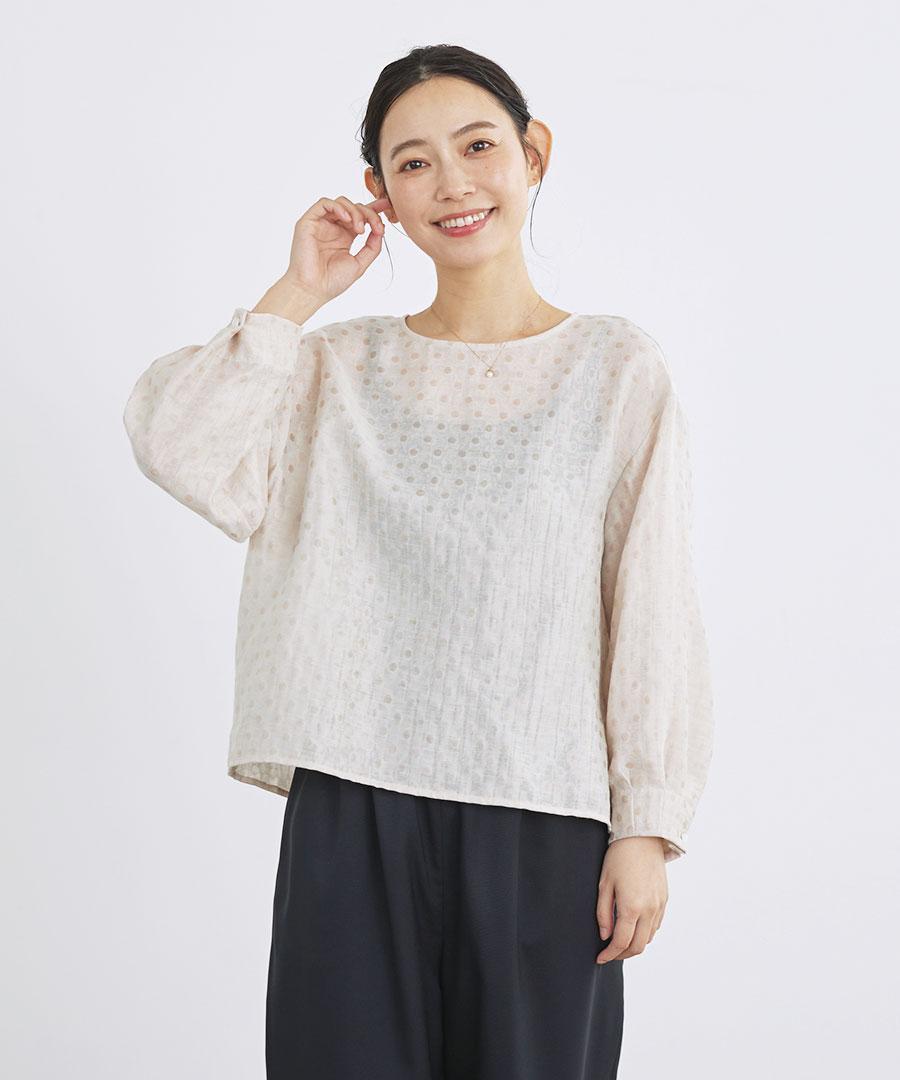 織りで表現したドット柄は、プリントでは出せない立体感と上質な素材ならではの仕上がりになっています。
