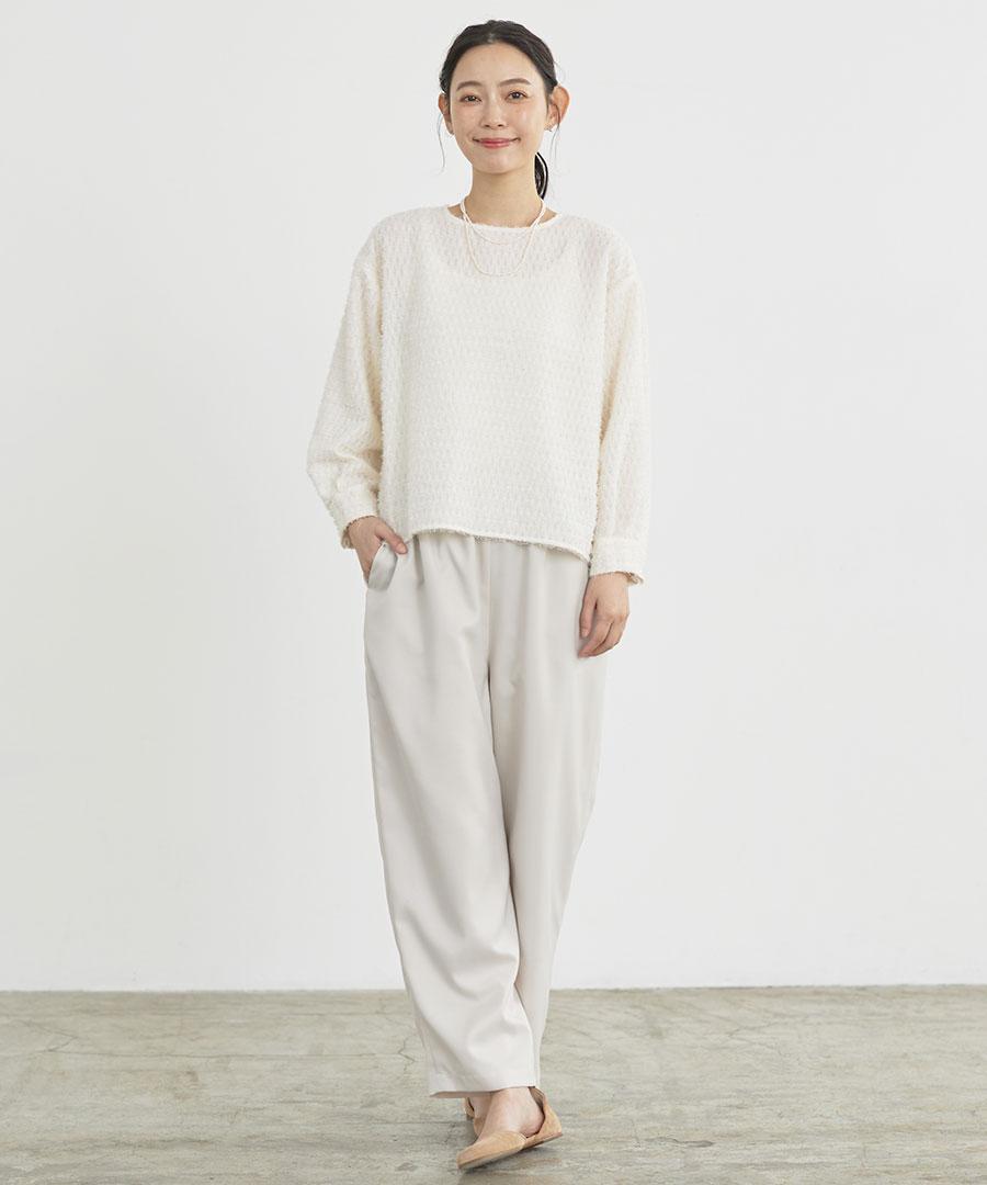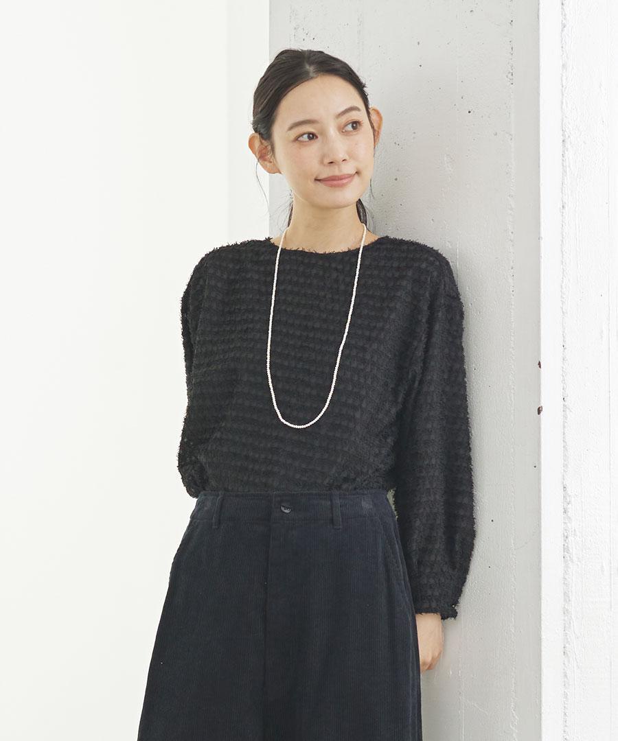 シンプルなクルーネックデザインで、アクセサリーやスカーフとの相性も抜群◎