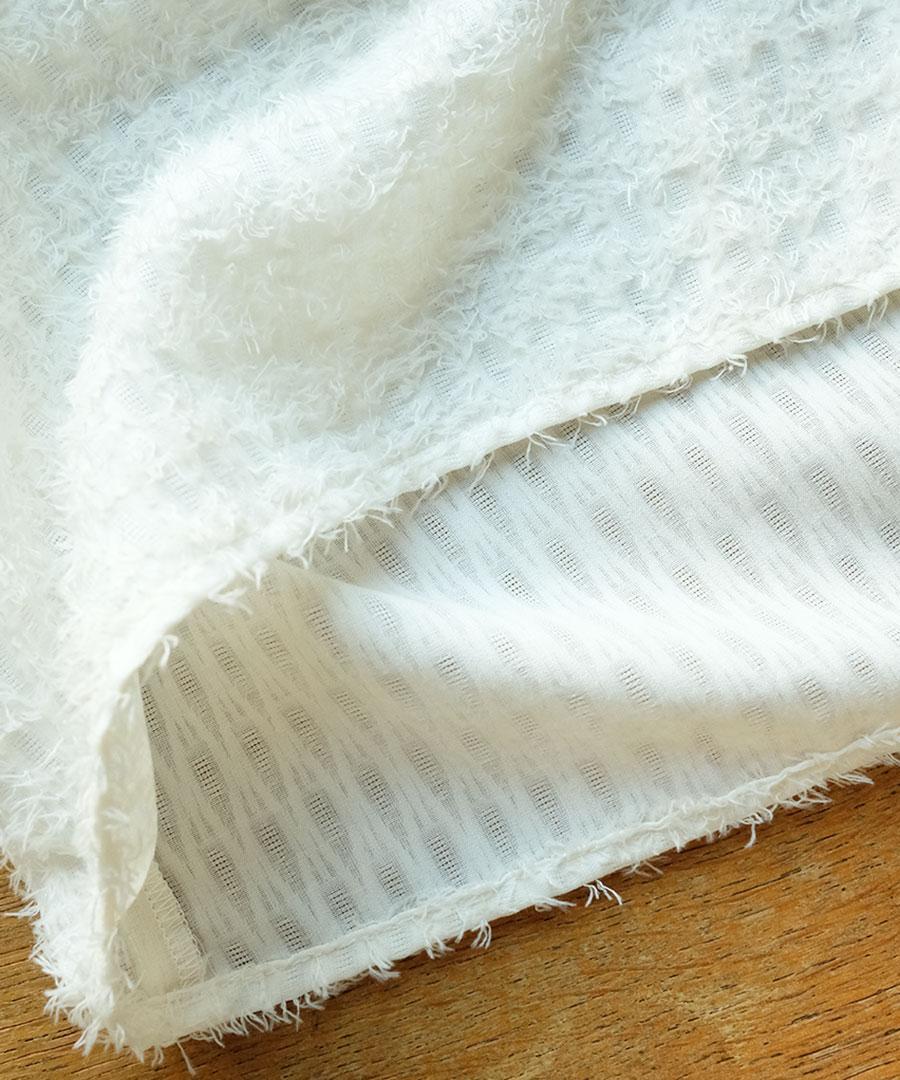 繊細な柄で作る透け感が印象的で、上品な毛足も存在感がある1枚です。