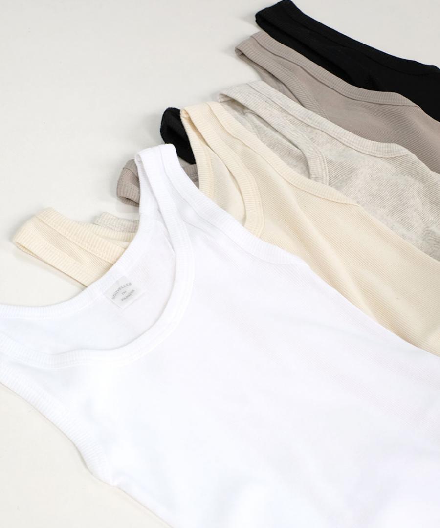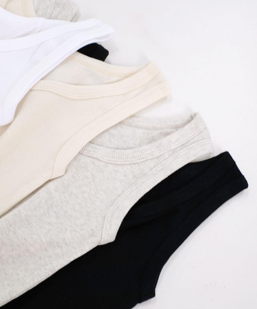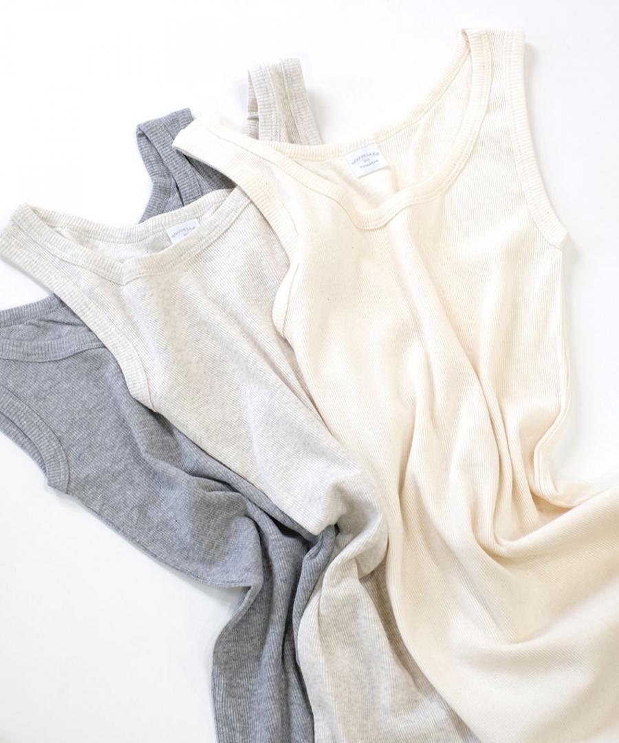 シンプルなコットンのテレコ素材のタンクトップです。