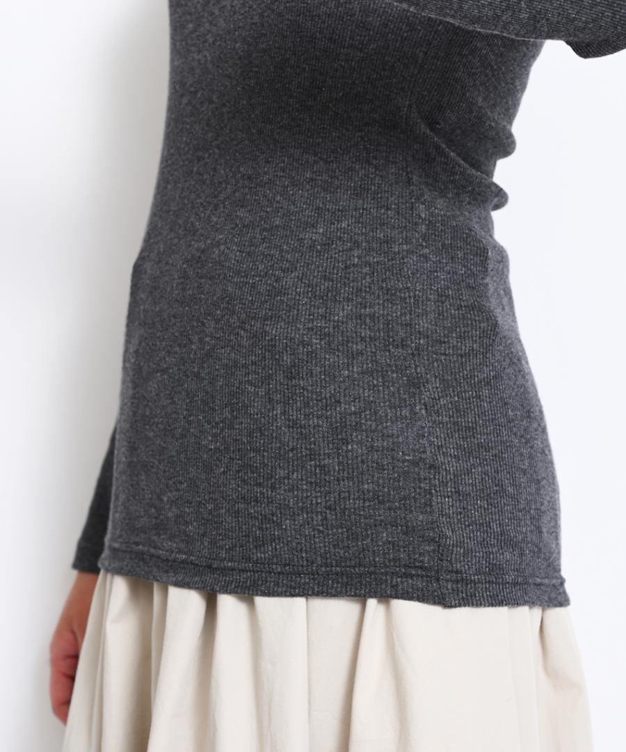 首元は少しゆったりめに空いており、上から重ねたアイテムの邪魔をしない点も使い勝手が良いです。