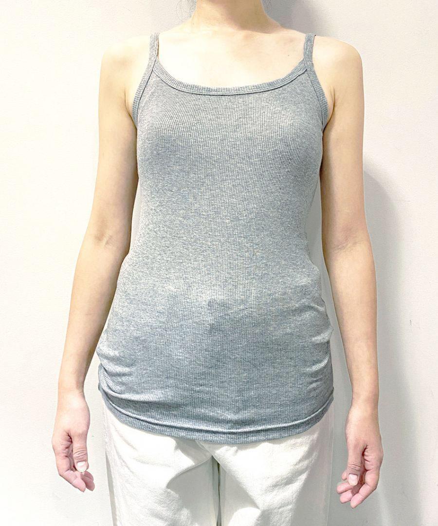 コットン素材なので汗止めとしても、ブラウスやシャツの下に1枚着たいですね。