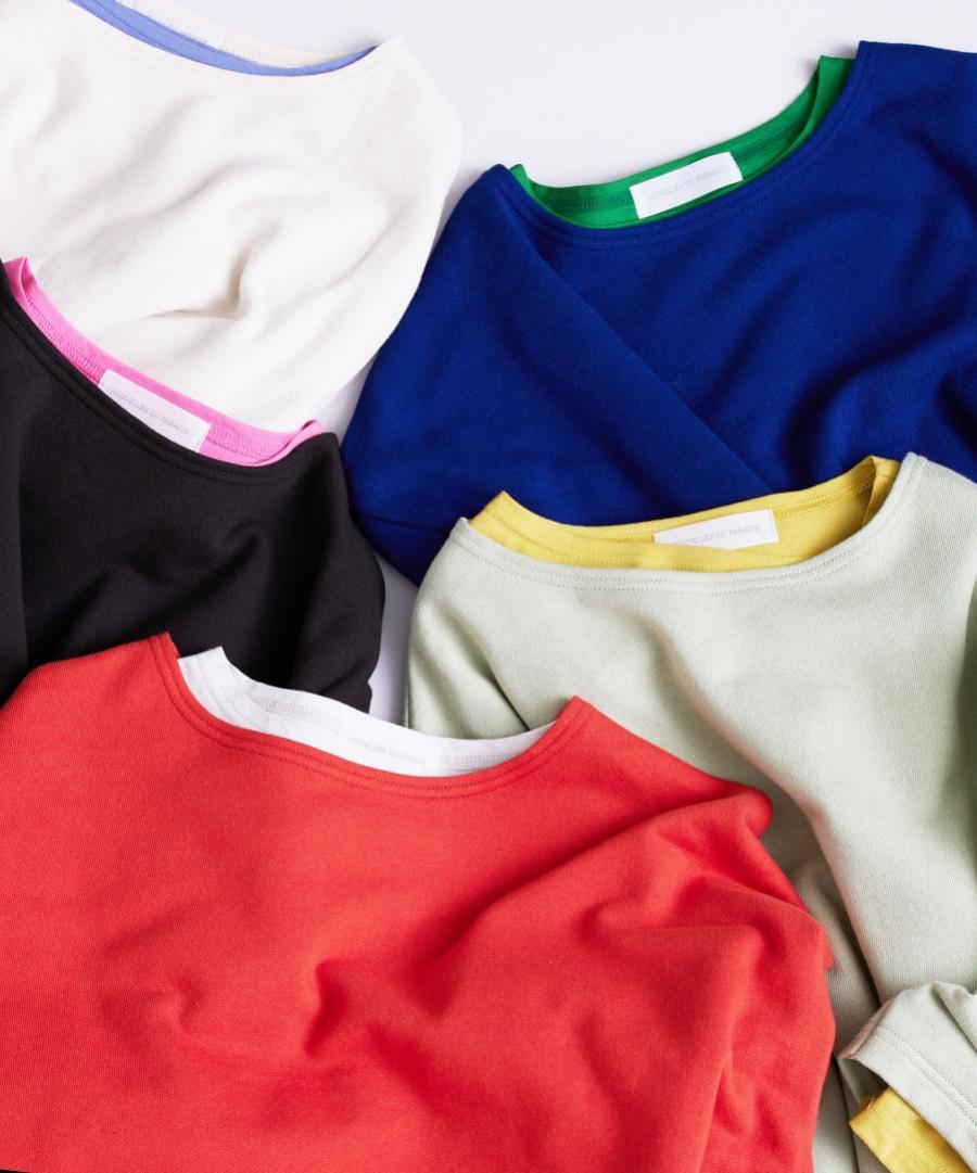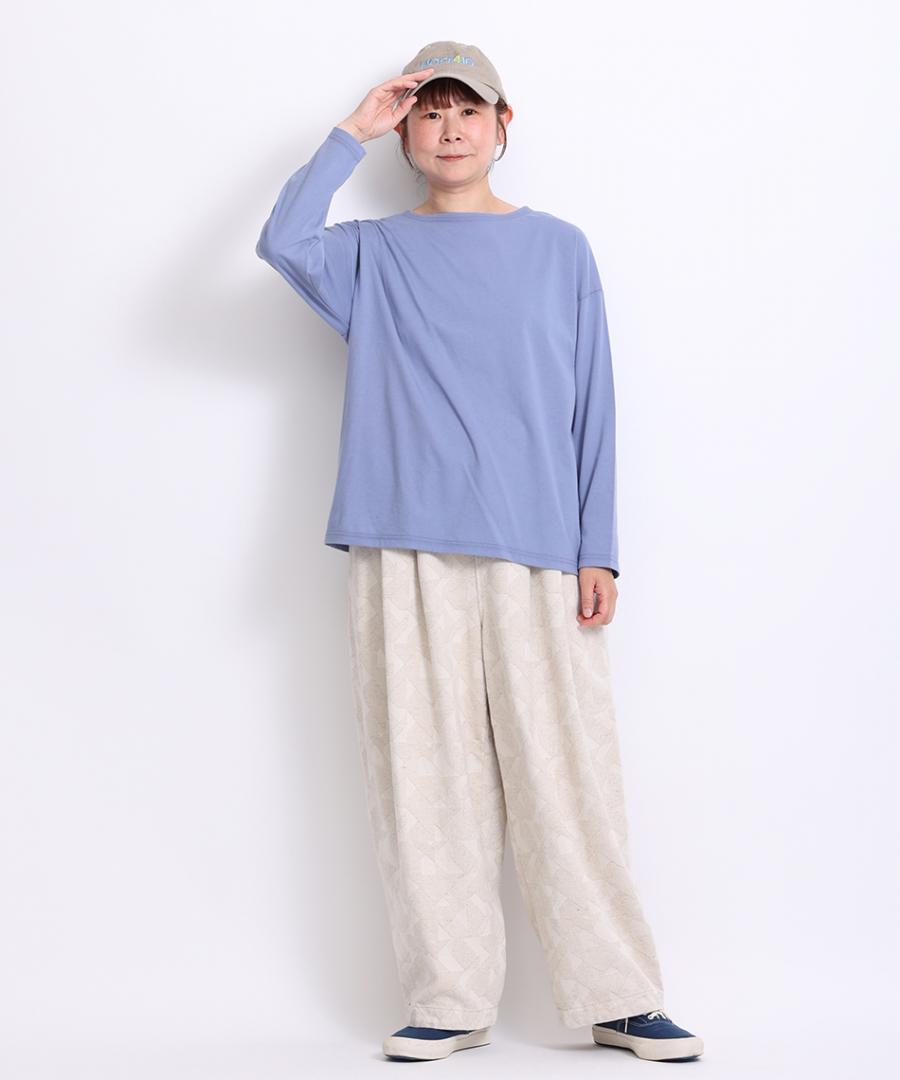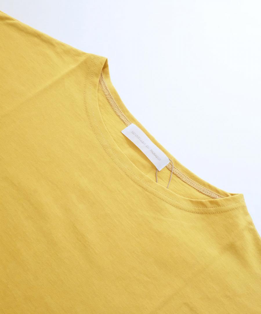 生地の密度を通常よりも詰めて編むことで、さらりとクリアな表面感に仕上げた“NOUVELLES DU PARADIS”オリジナル素材「トロワ天竺」を使用して作られた長袖Tシャツです。