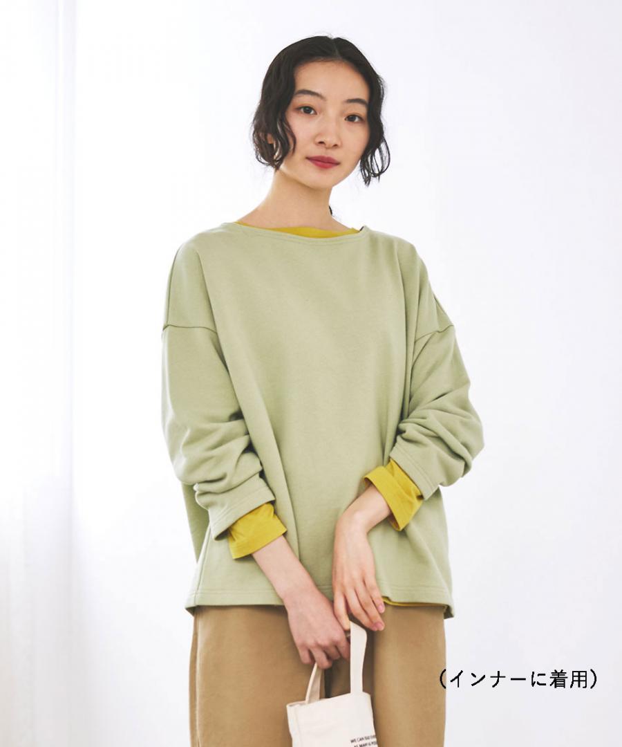 「basic裏毛 ワイドプルオーバー」と重ね着すると絶妙にチラ見せしたレイヤードスタイルが楽しめますよ。