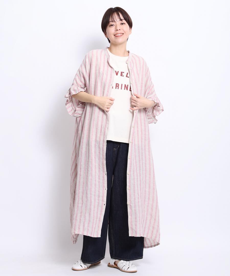 袖はスッキリとした5分袖で二の腕周りをやさしくカバーできるので、隙間からのインナー見え防止にも役立ちます。
