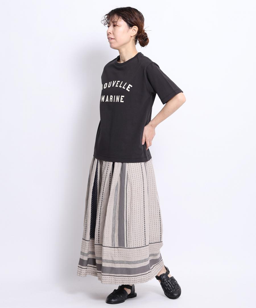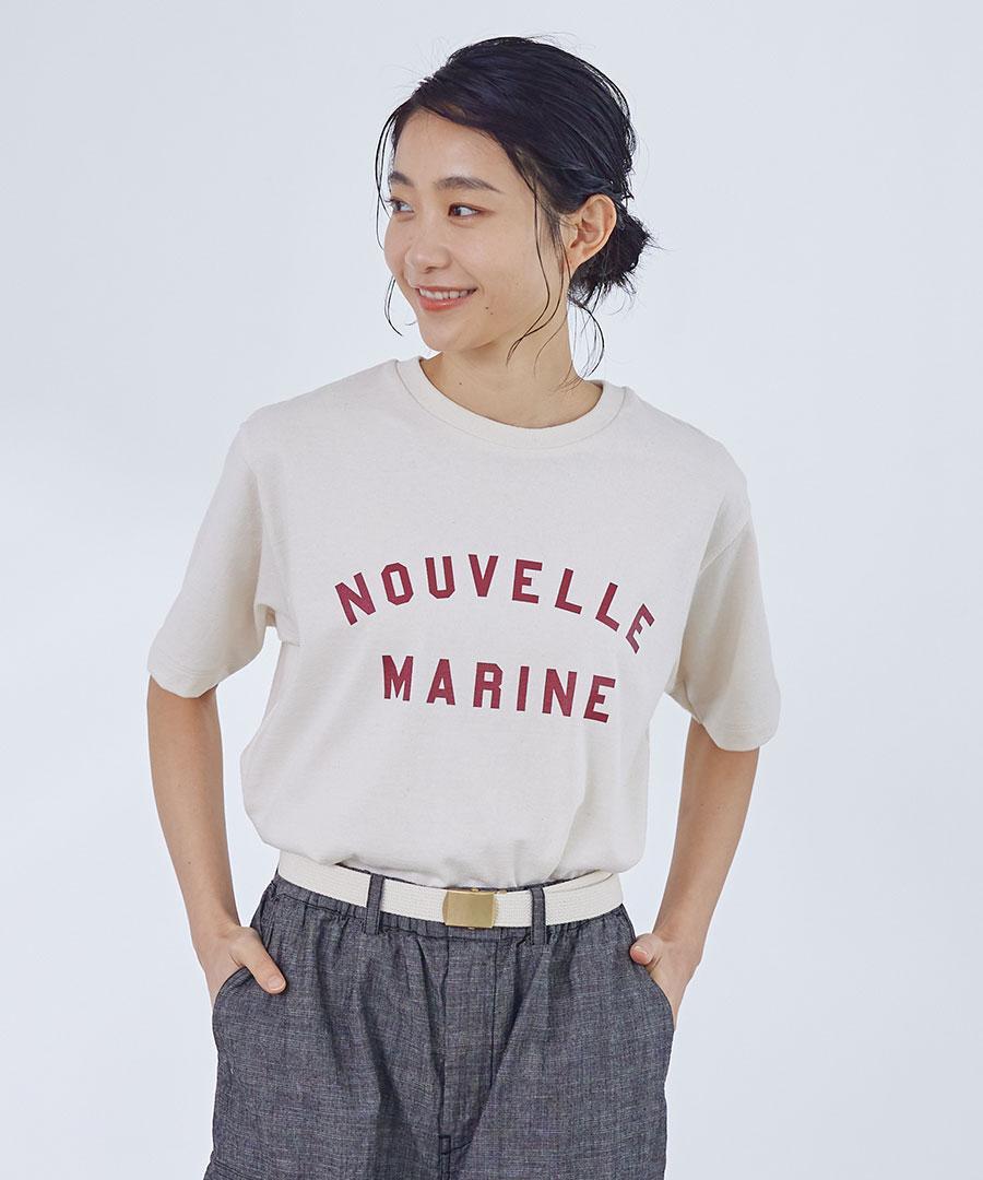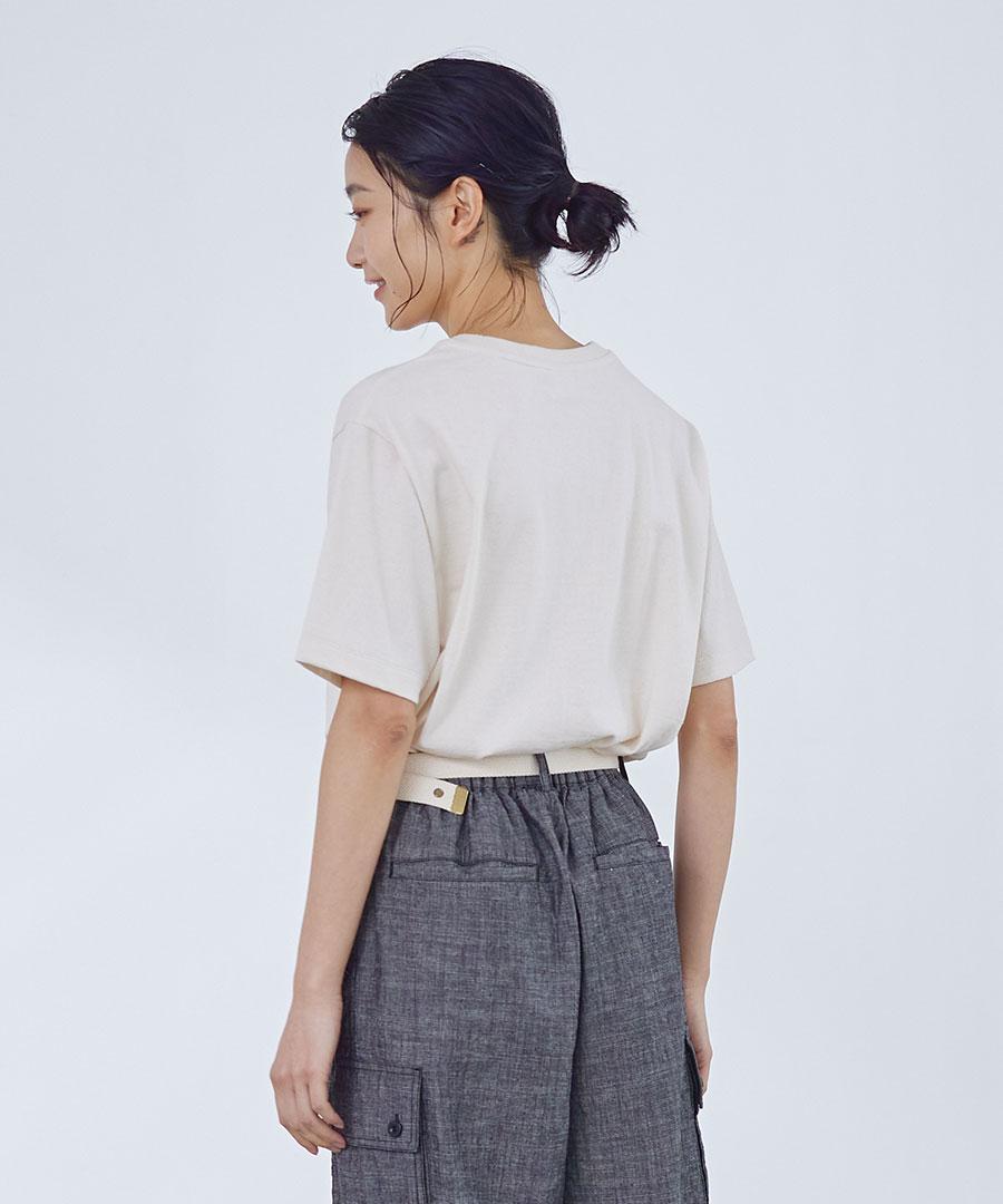 空気を含ませた空紡糸を使用し、シャリ感のあるドライコットン天竺素材のロゴTシャツです。