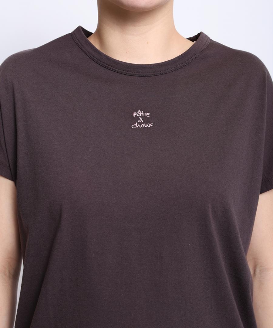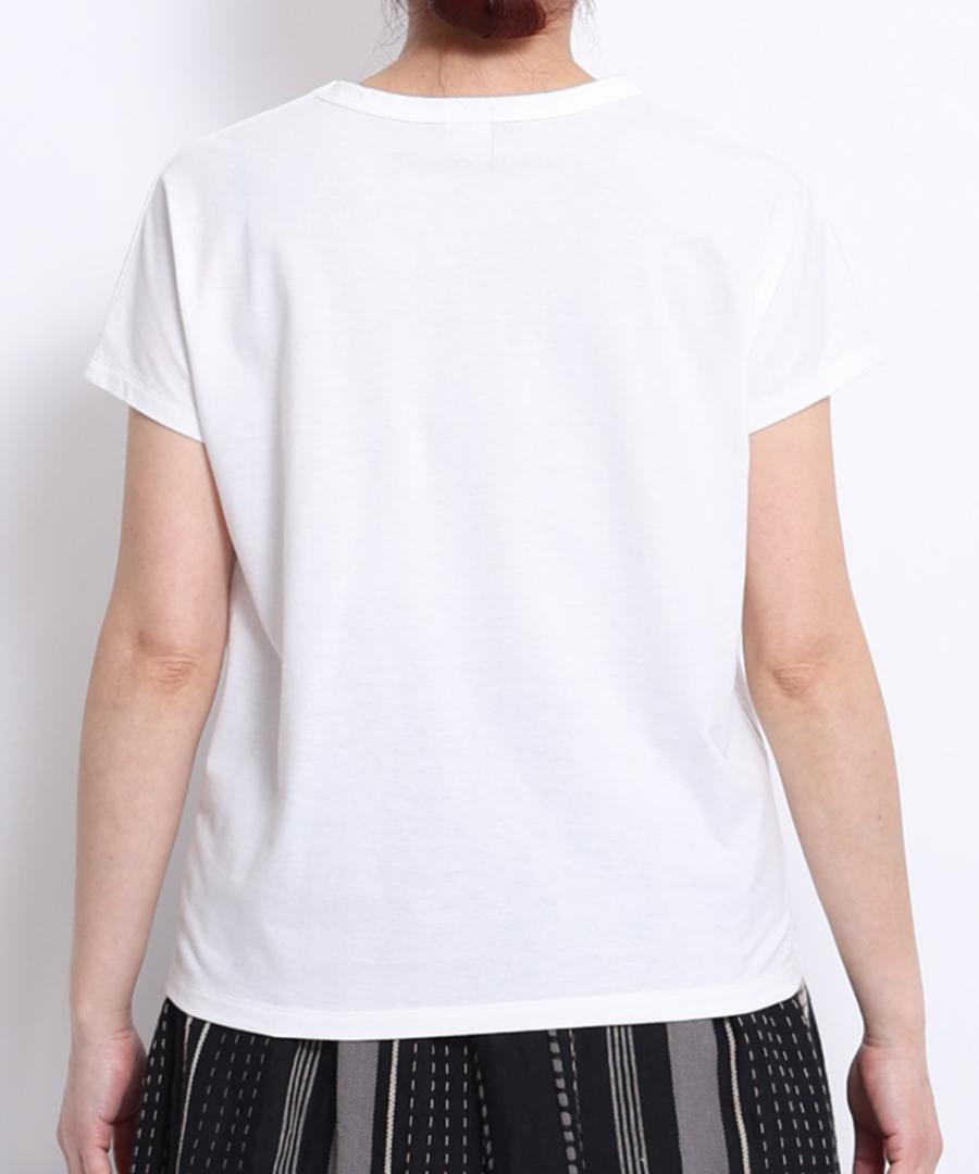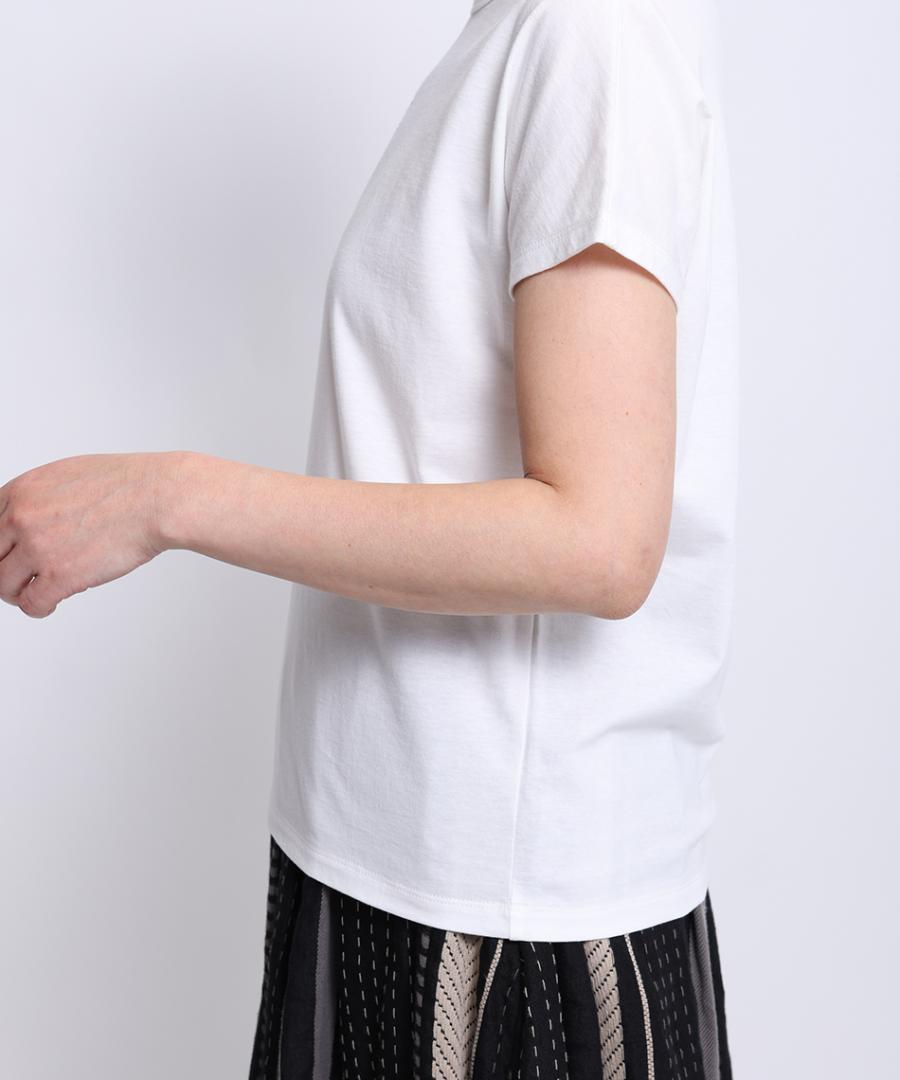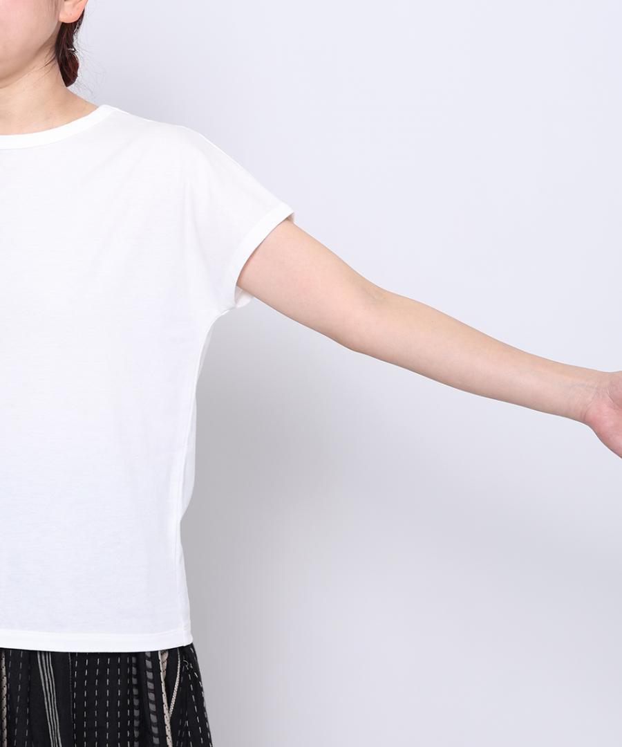 柔らかく薄手の肌触りの良い綿素材で、コンパクトなTシャツ。