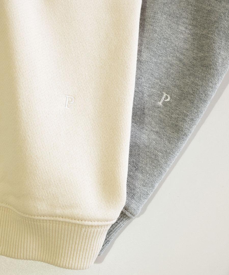 左裾に小さく入った「P」の刺繍がほんのりとさりげないポイントです。