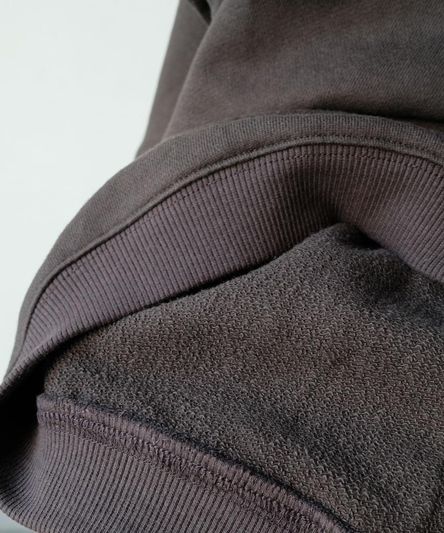 ゆっくりと空気を含みながら、肌触りの良い柔らかな風合いに編み立てられた裏毛生地。