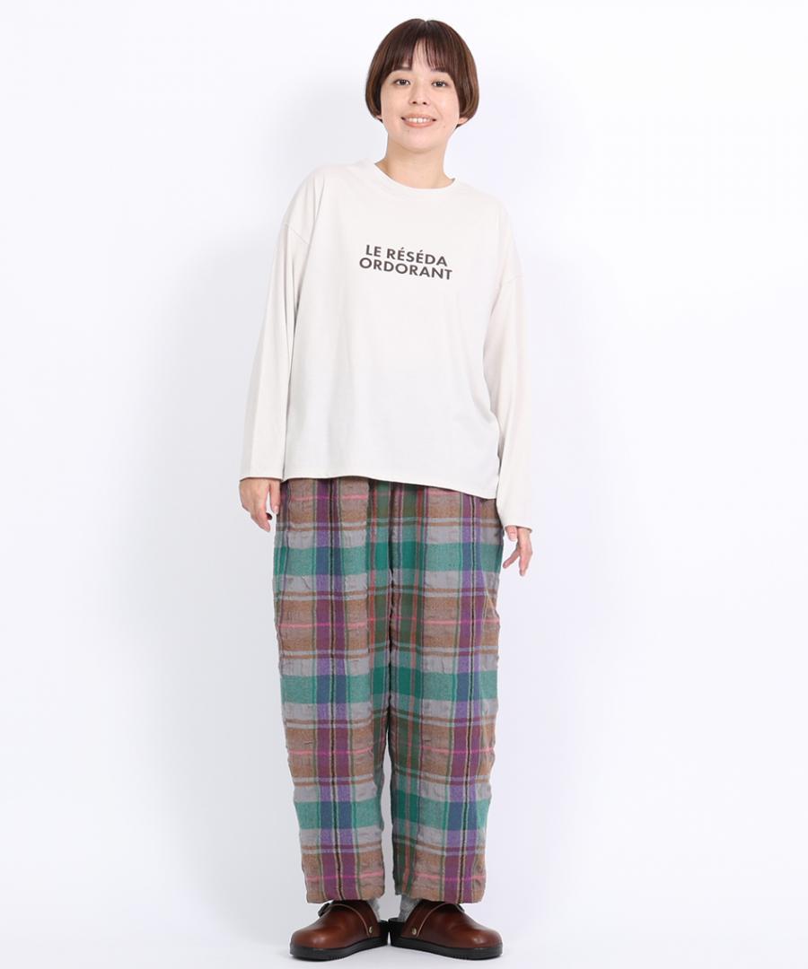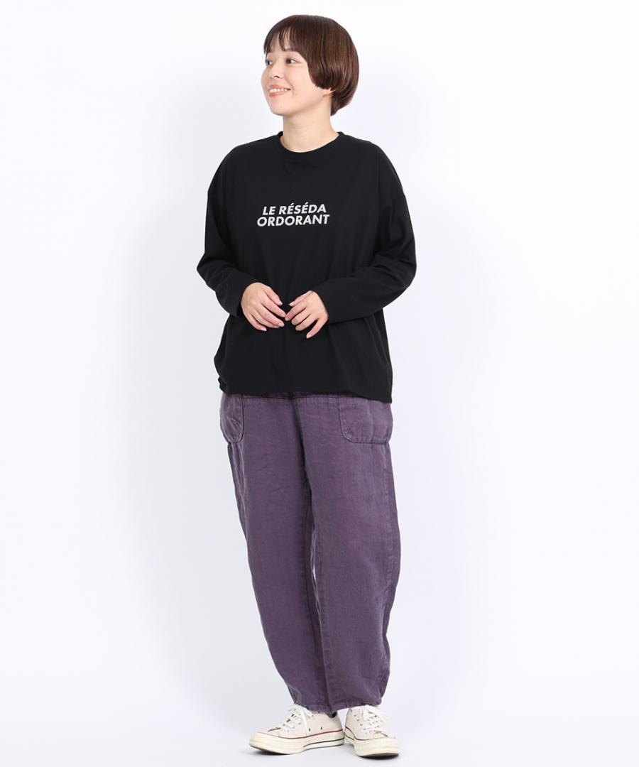 カーディガンやジャケットのインナーとしてもロゴがポイントになってくれて頼れるアイテムですよ。