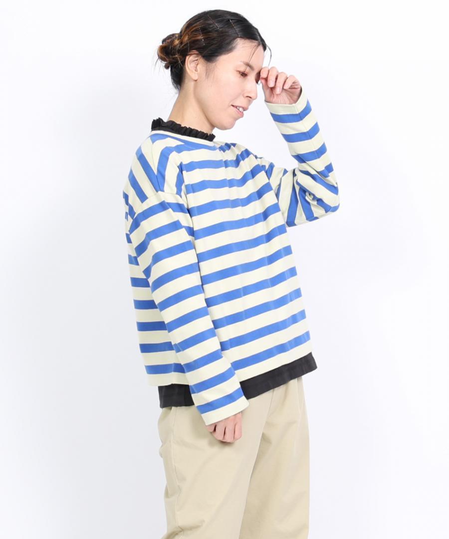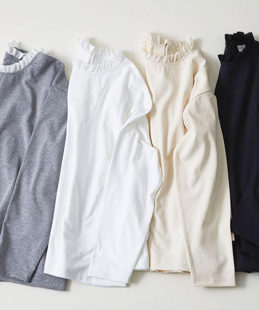 ドライコットン天竺 衿フリル長袖