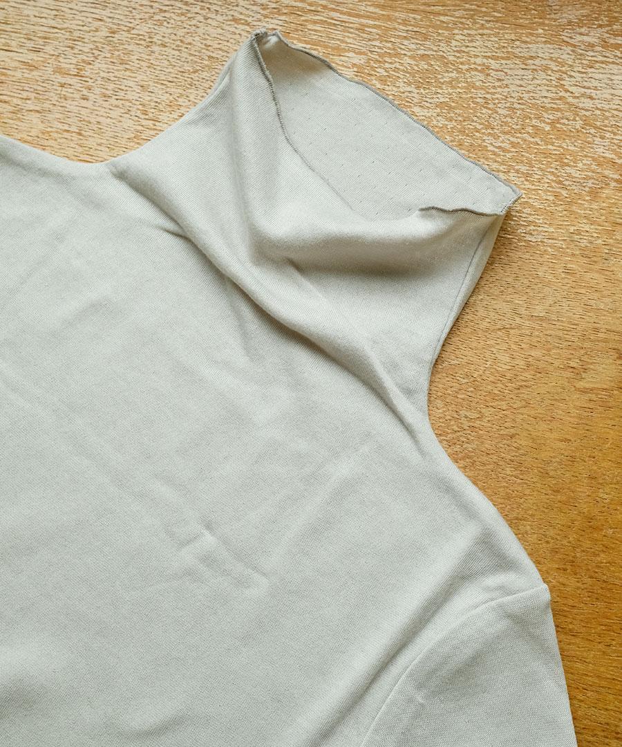 高めのハイネックが首元をしっかりカバーしつつ、柔らかな素材で窮屈感ゼロ。