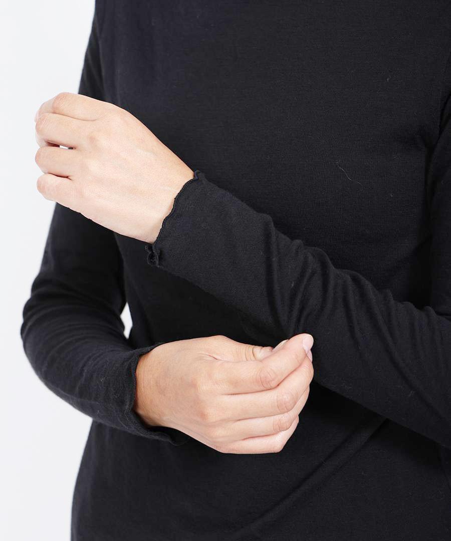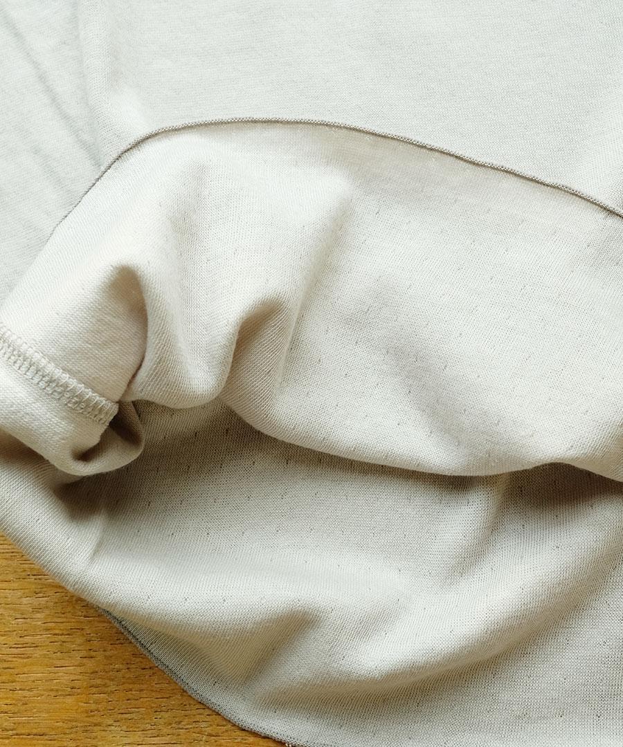 超長綿のスーピマコットンを贅沢に使用し、高密度に編み立てた接結ニットが空気をたっぷり含み、ふんわりとした肌触りになっています。