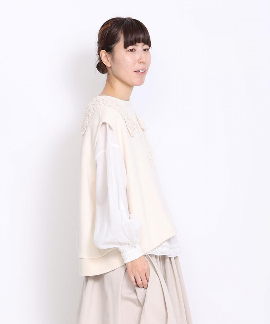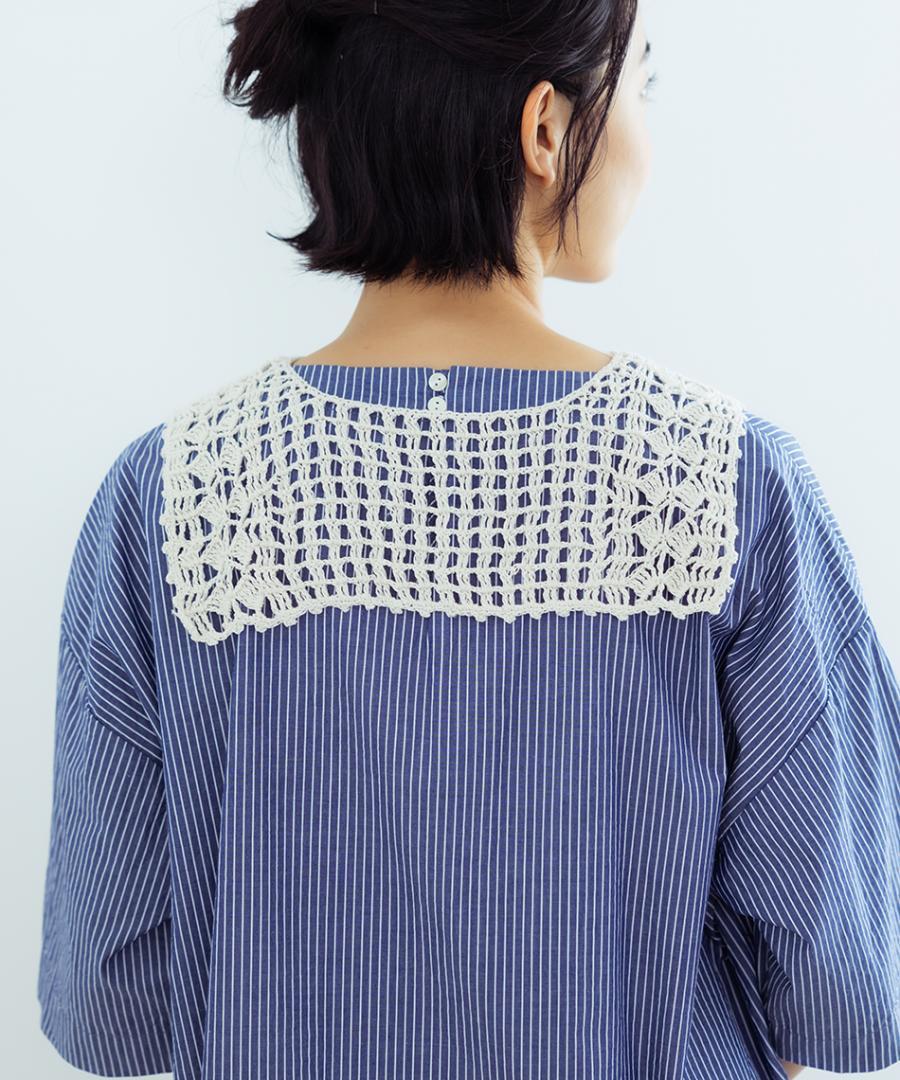 クルーネックのプルオーバーやワンピースなど、シンプルなネックラインにアクセサリー感覚で着けていただけ、