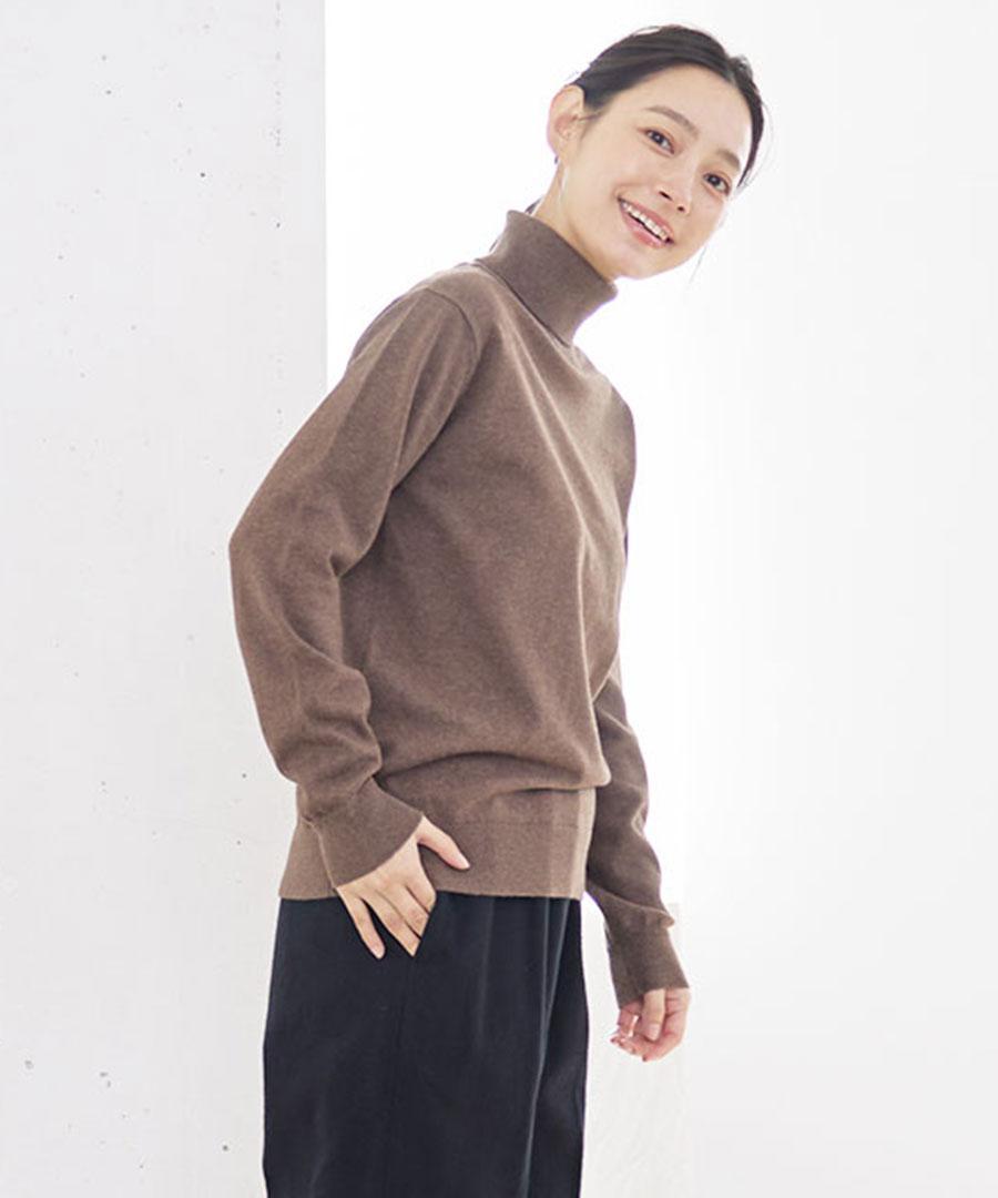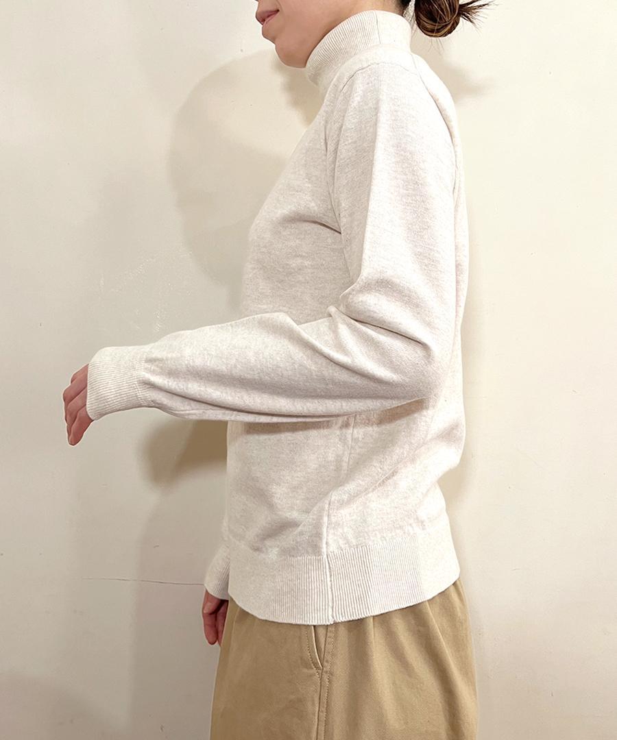 コットンなのにまるでウールのようにふわふわで、ハイゲージの糸で編みたてられた上品なニット。