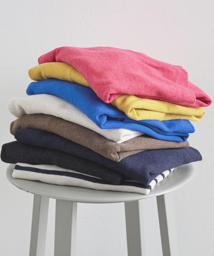 一枚で着られて、なおかつ上から重ね着もしやすいので、季節の変わり目に活躍する、色違いで揃えたくなるシリーズです。