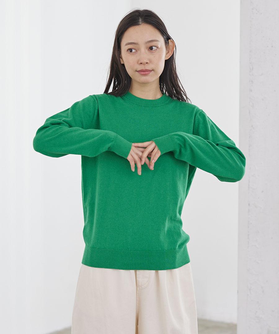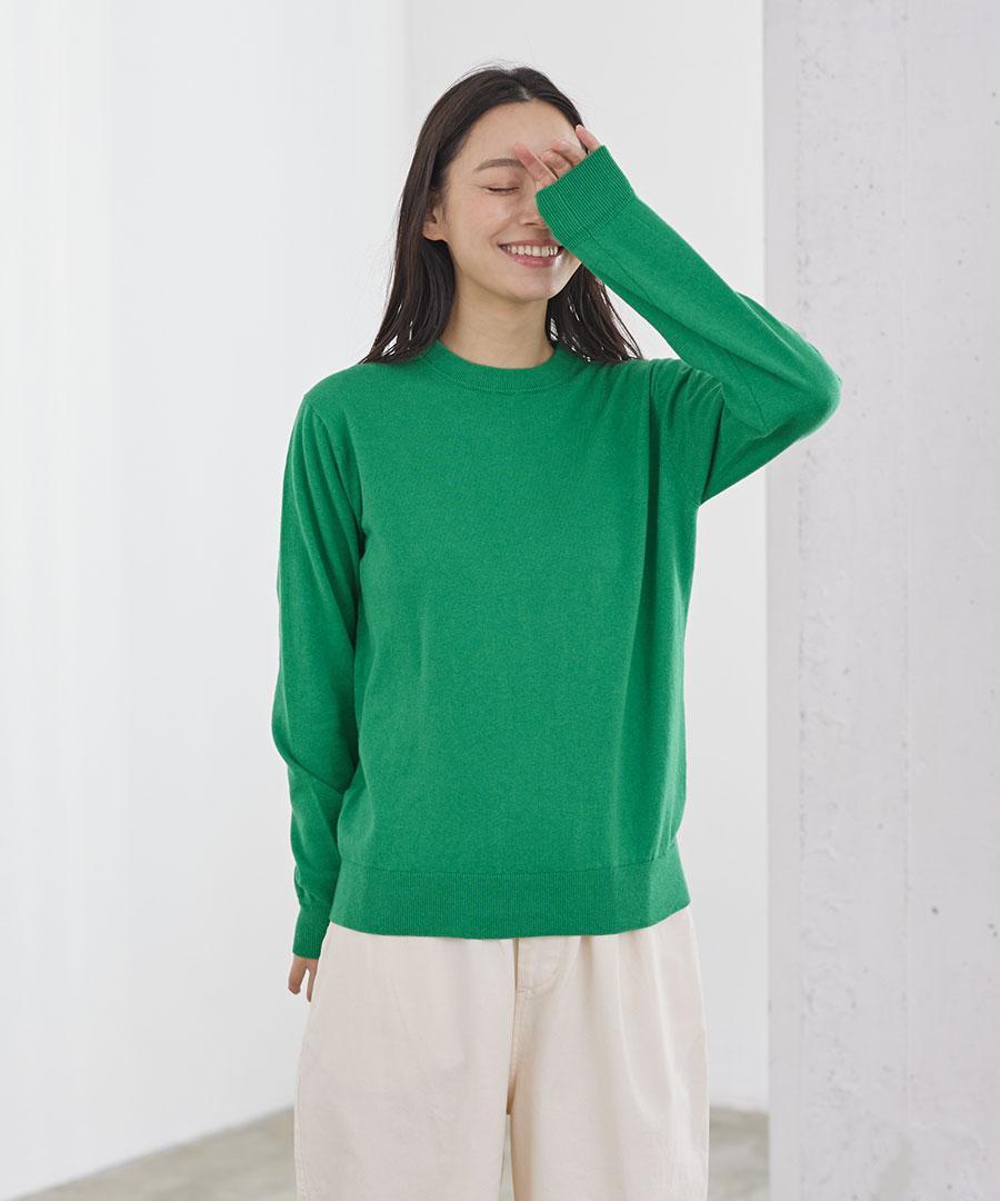 コットンなのにまるでウールのようにふわふわで、ハイゲージの糸で編みたてられた上品なニット。