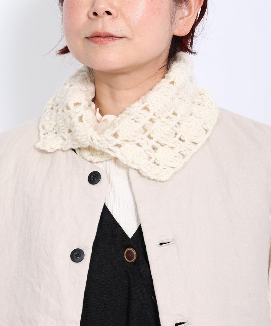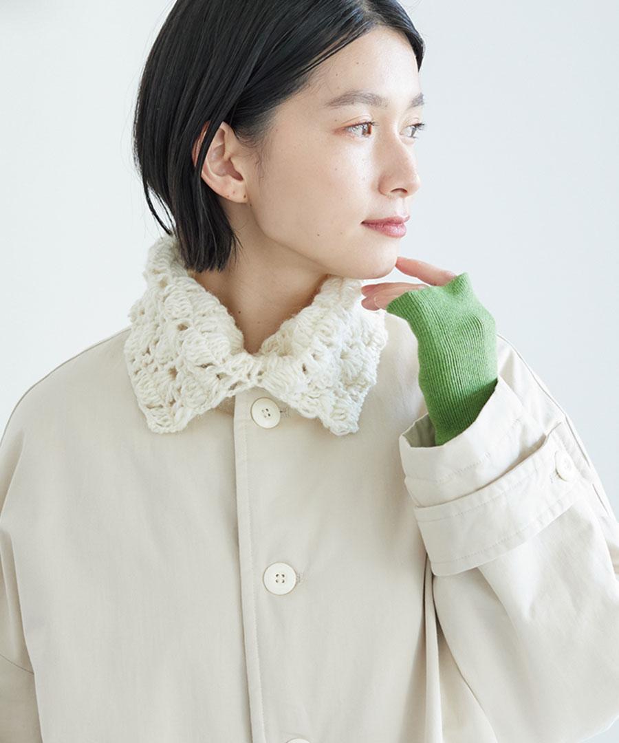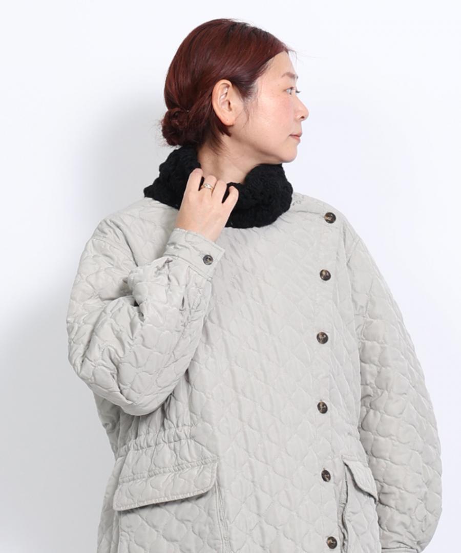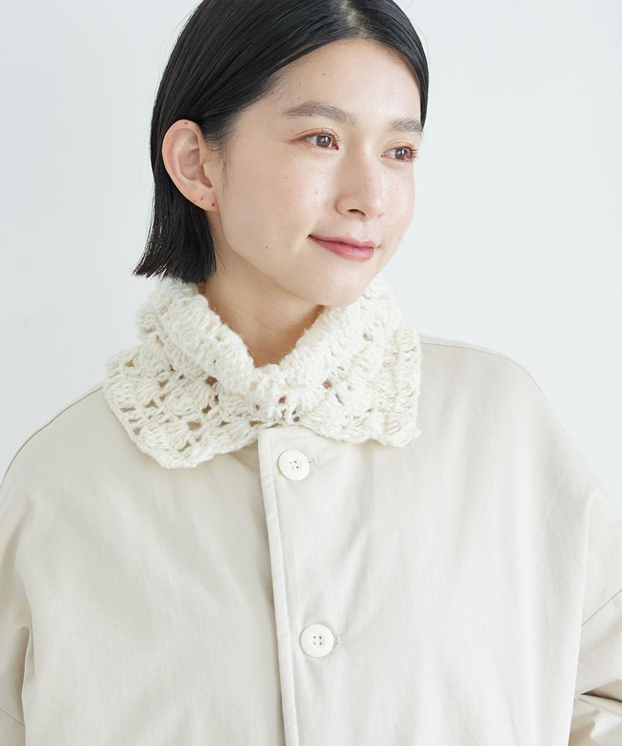 頭からかぶって頂いて首元におさまる、ざっくりとしたネックウォーマーは