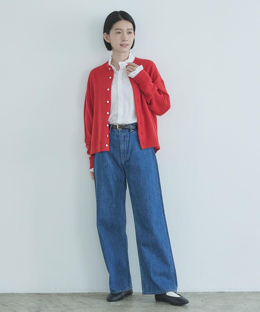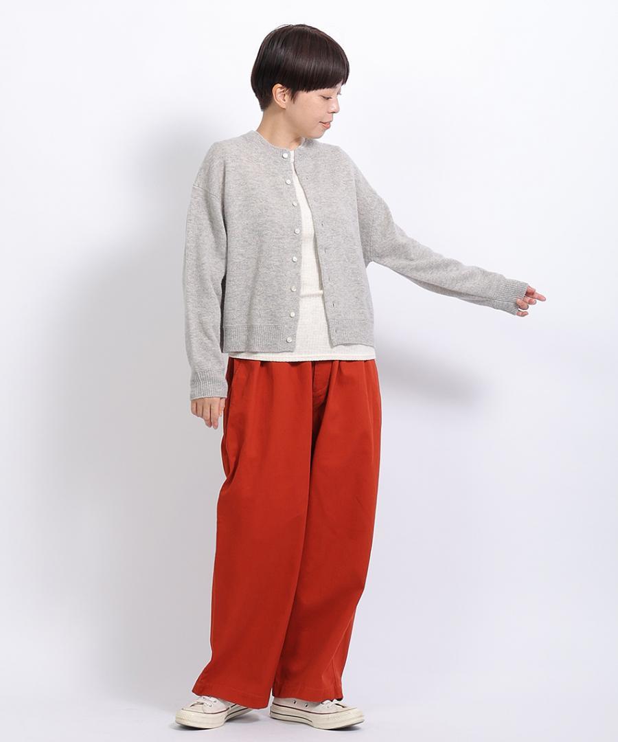 着丈もジャスト丈で、トップスに重心をおいてすっきりと見せてくれます。