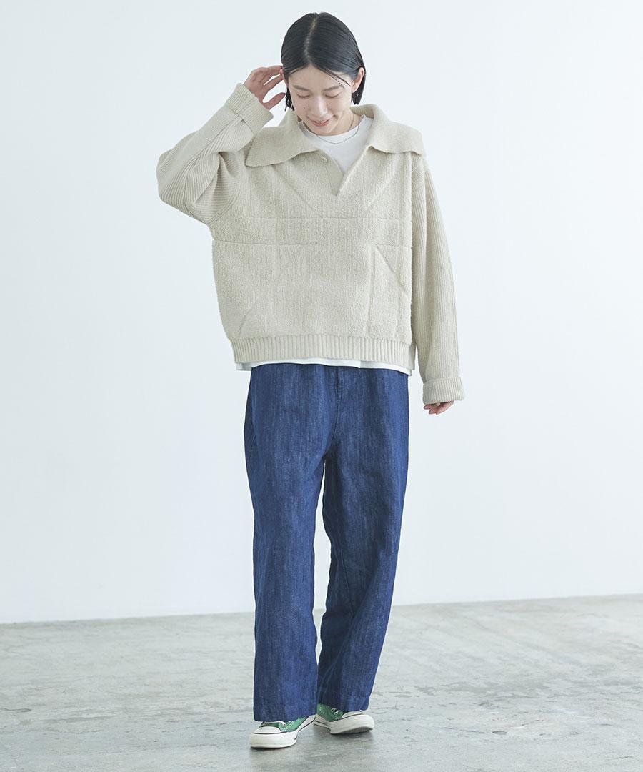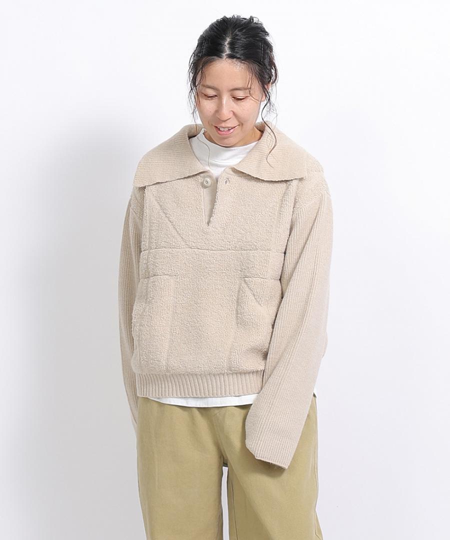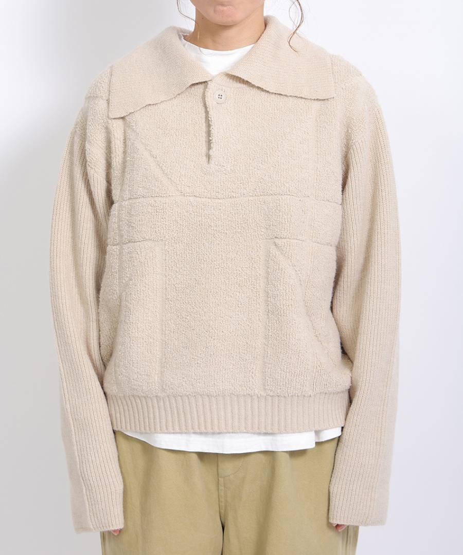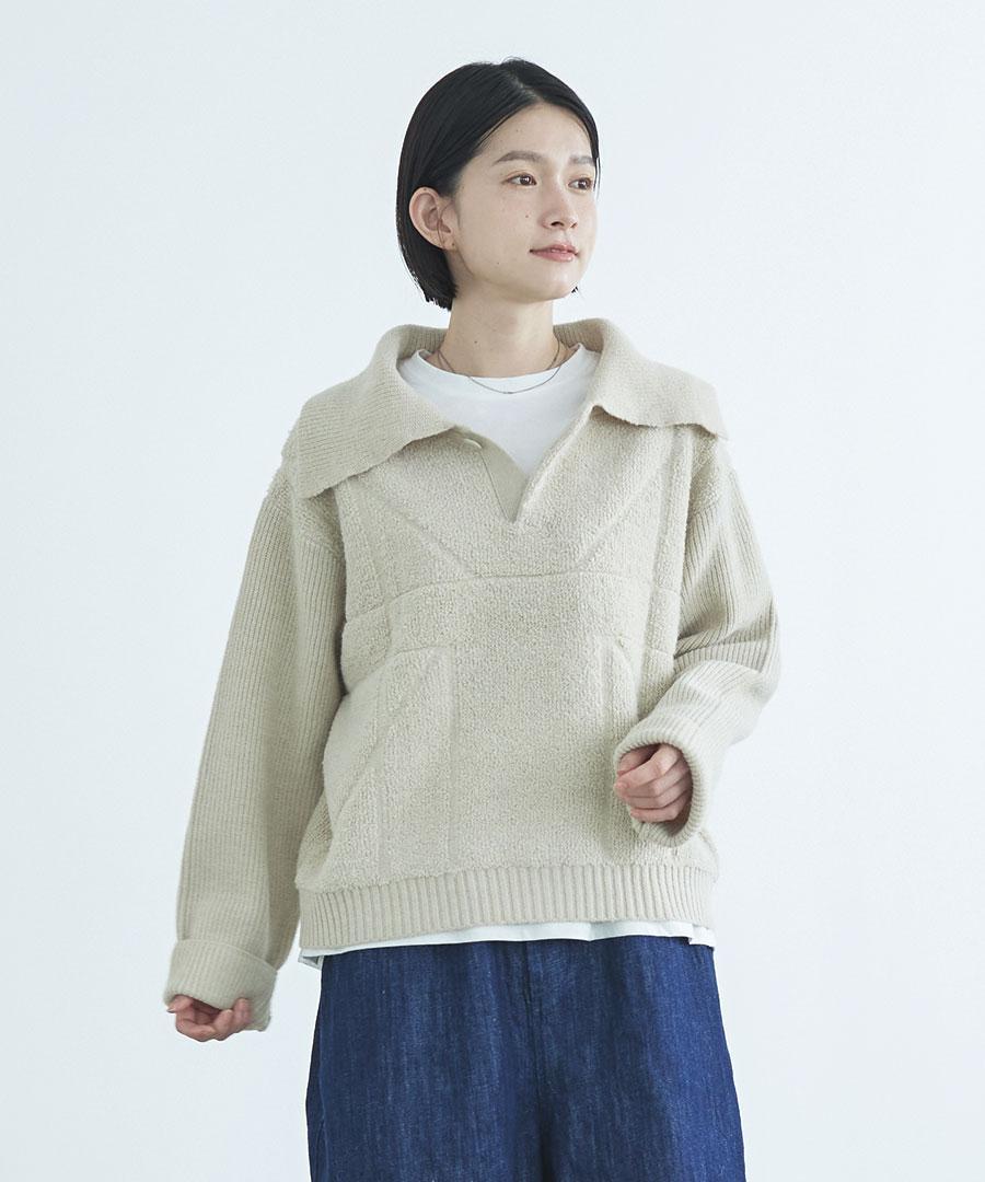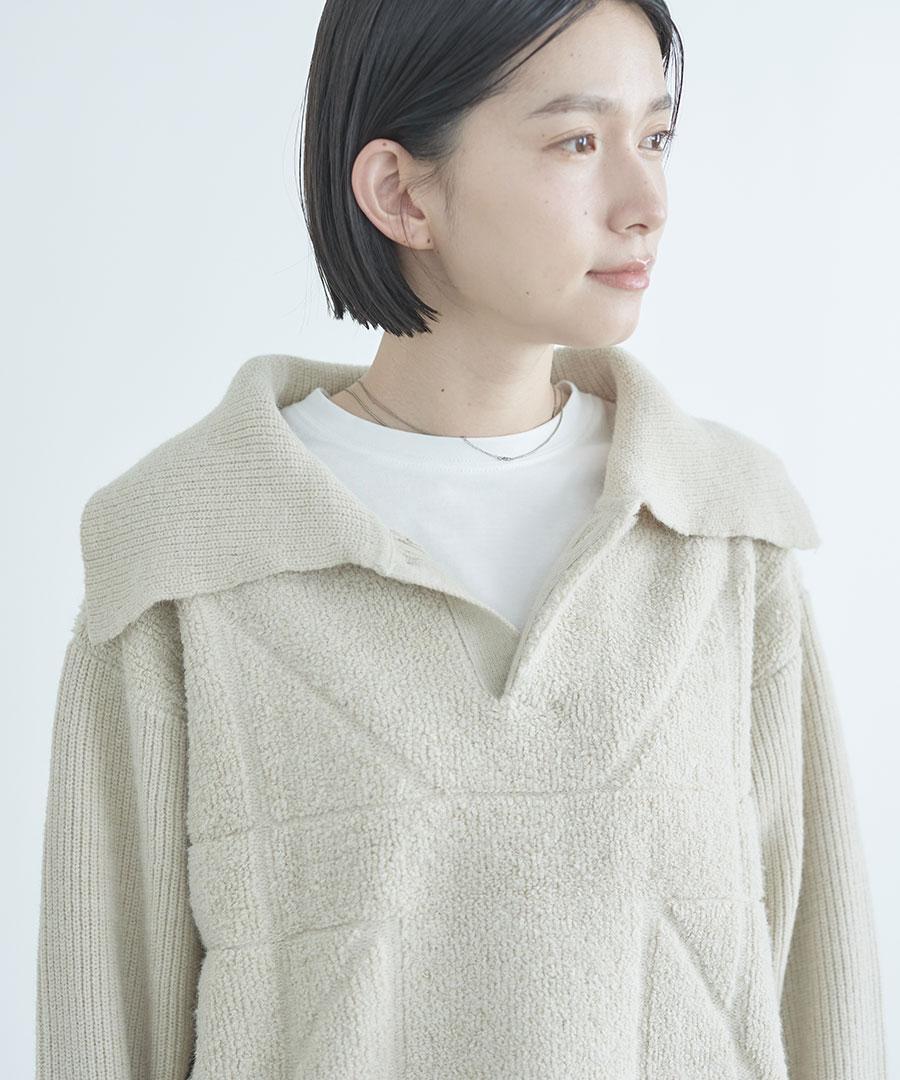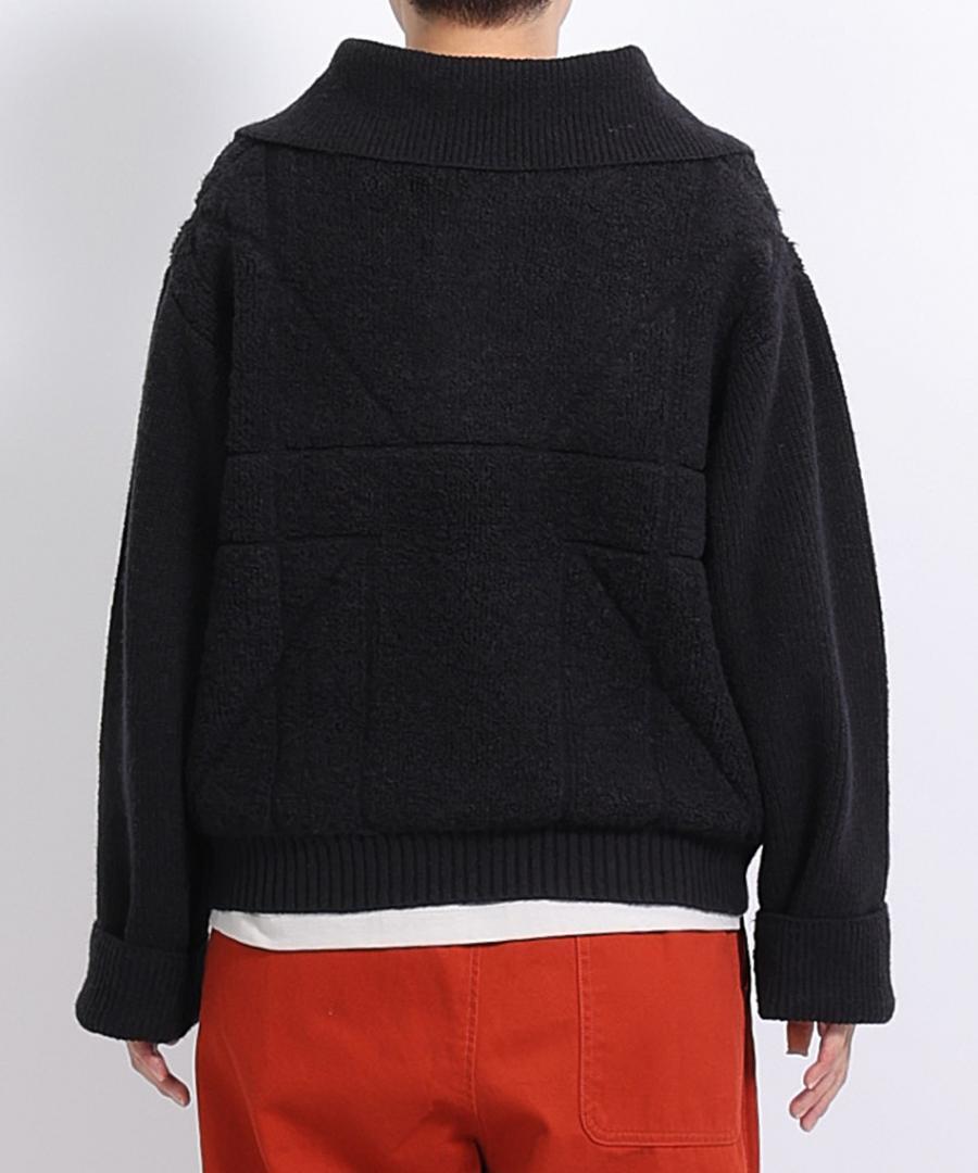 キルト風の柄をパイルジャガードで表現し、ポコポコとした表面感が魅力的なニット。