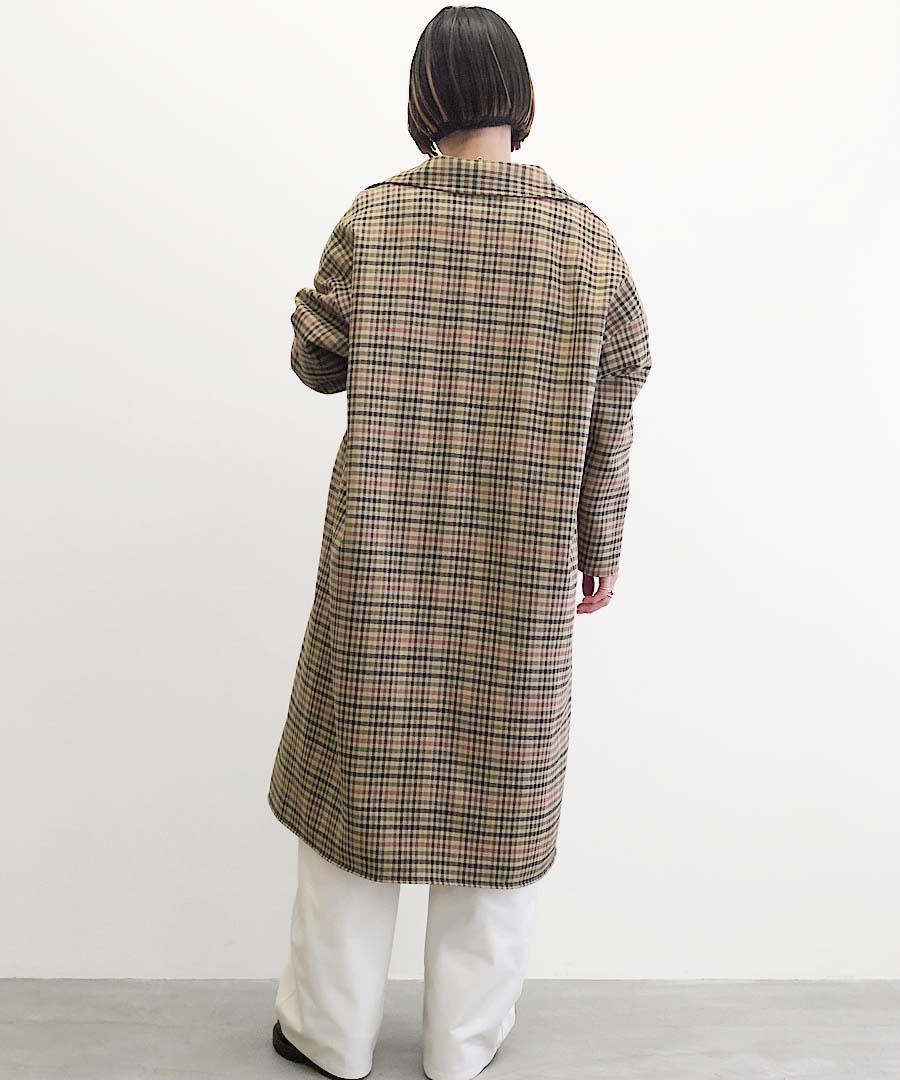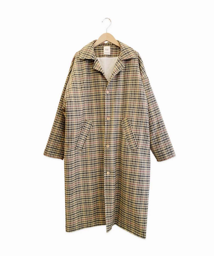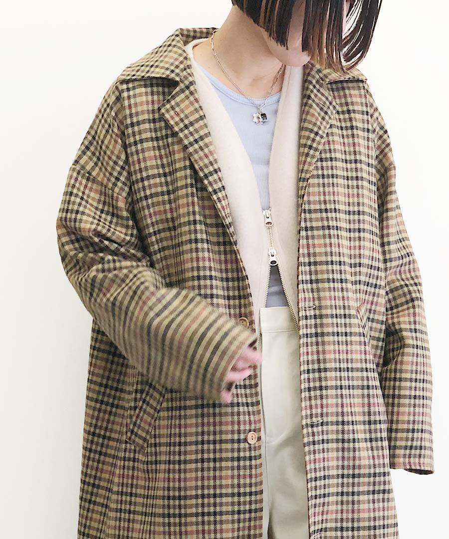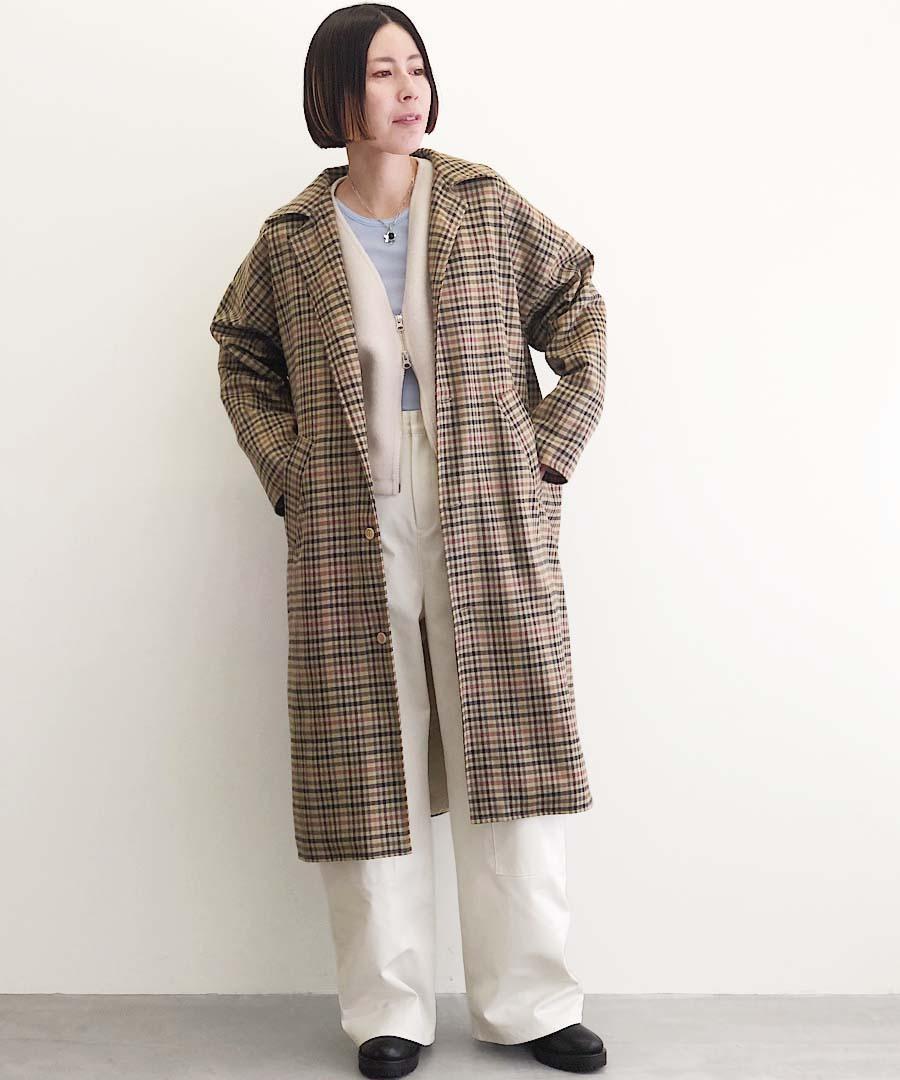 クラシックなチェックのロングコート。